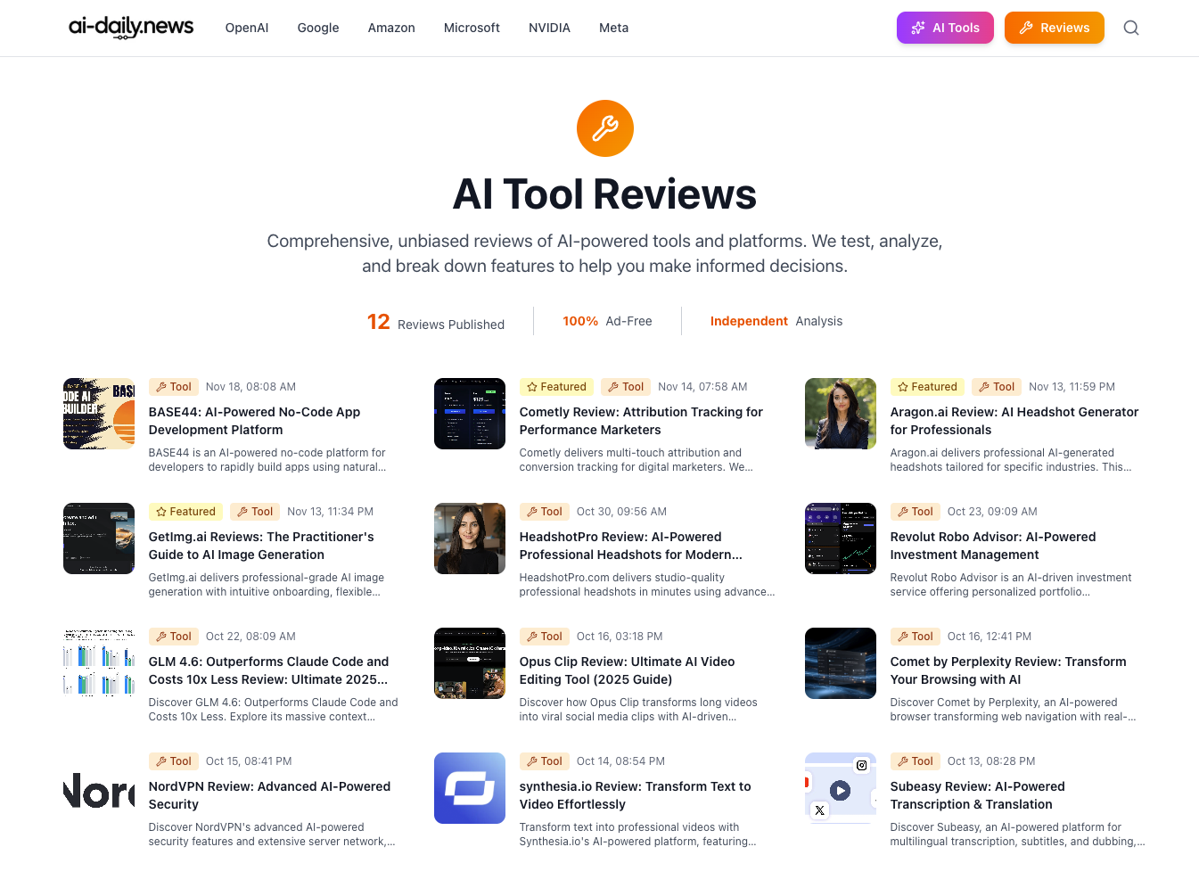 AI Daily の AI Tools Marketplace は、AI ツールを厳選して一元化したディレクトリ。コーディング・ライティング・デザインなどの用途別に、セマンティック検索とスマート...
