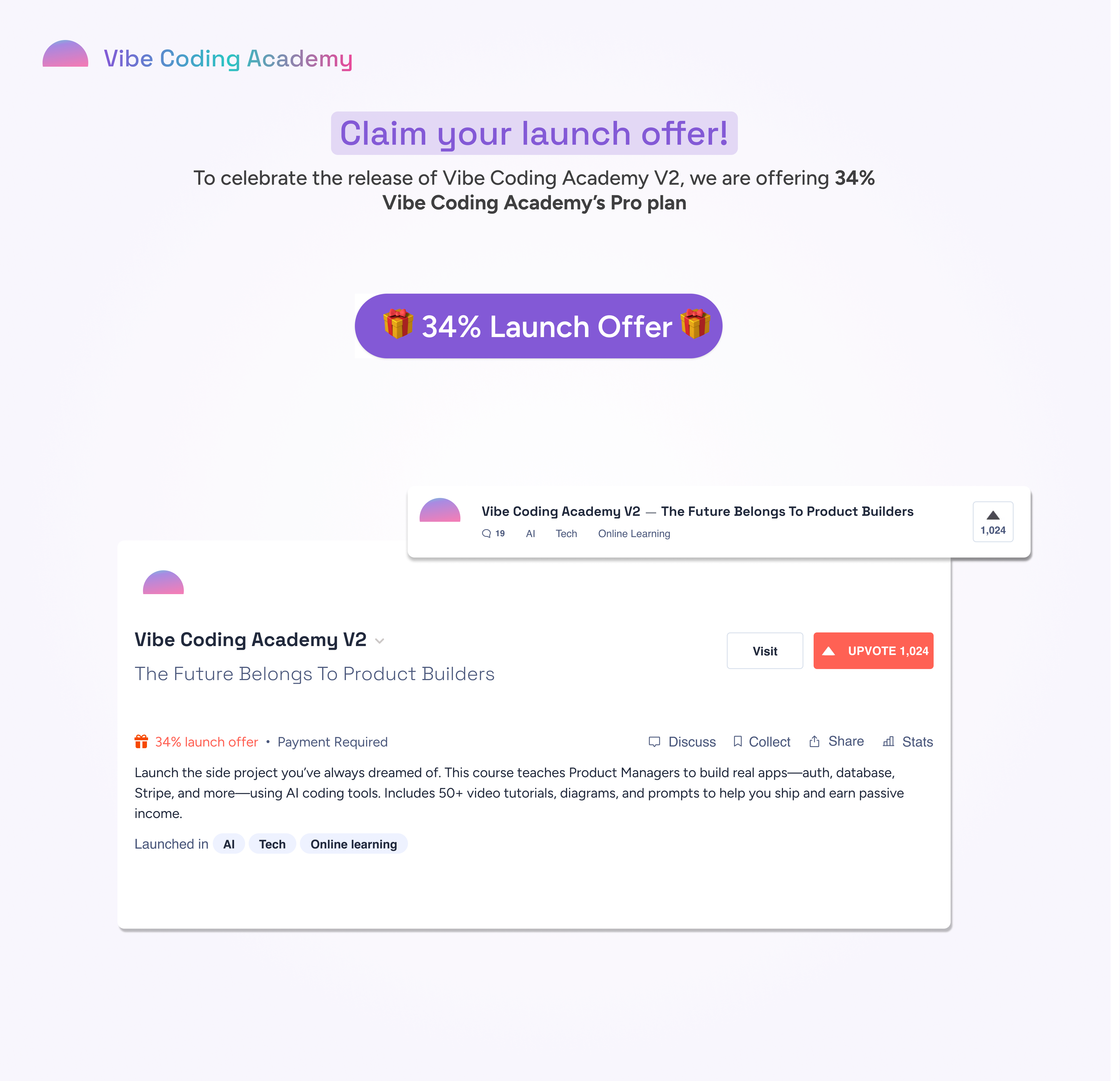 ## 製品概要 Vibe Coding Academy V2 は、AI を活用して「プロダクトビルダー」になる人材を育成する学習プラットフォームです。モジュール化された短時間の動画レッスンと再利...