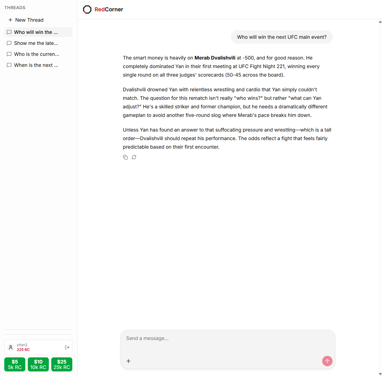 あなたのUFC統計・オッズ・予測を担うAIコーナーマン。