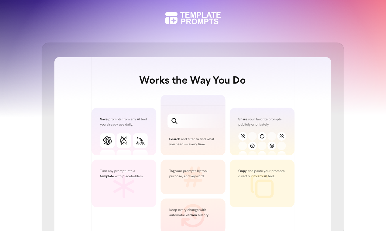 ## プロダクト概要 Template Promptsは、AIを使用する人にとっての個人用プロンプトライブラリです。散乱したプロンプトを一つの場所に整理し、必要なときにすぐに見つけられるようにし...