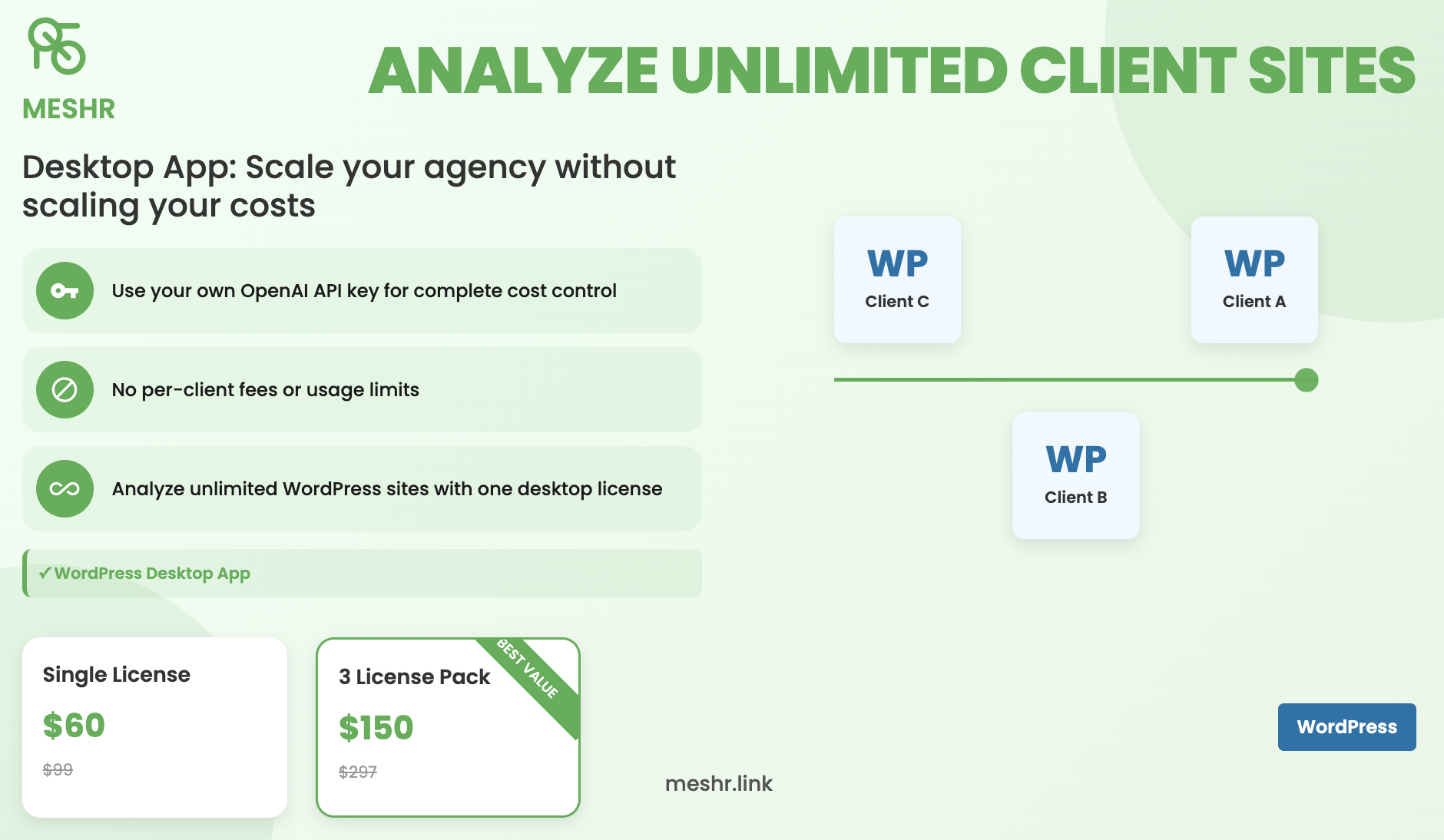 ## 概要 Meshr Desktopは、Mac上で動作するAI駆動の内部リンク解析ツールです。このプロダクトは、WordPressサイトの内部リンクをローカルで分析し、クライアントデータのプラ...