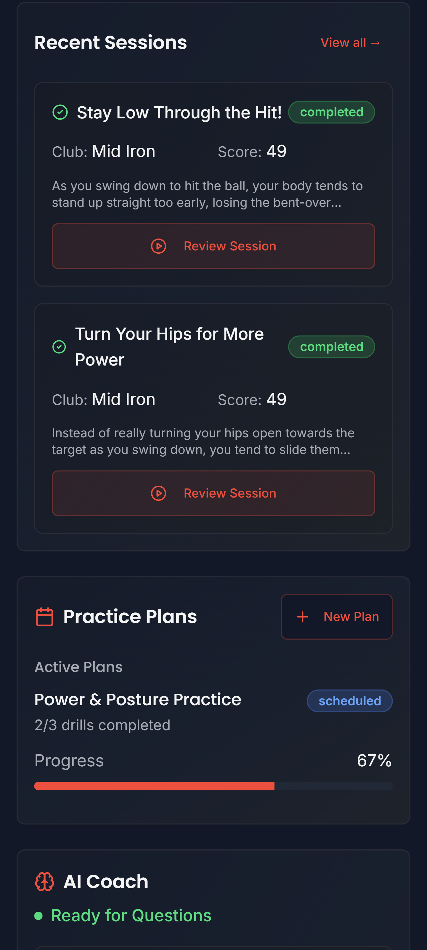 SwingSightはAIを活用した自動ゴルフ指導プラットフォーム。24/7で即時の客観フィードバックを提供し、0-100点のスコアリングと段階的分析、機材に合わせたAI生成ドリルのカスタム練習...