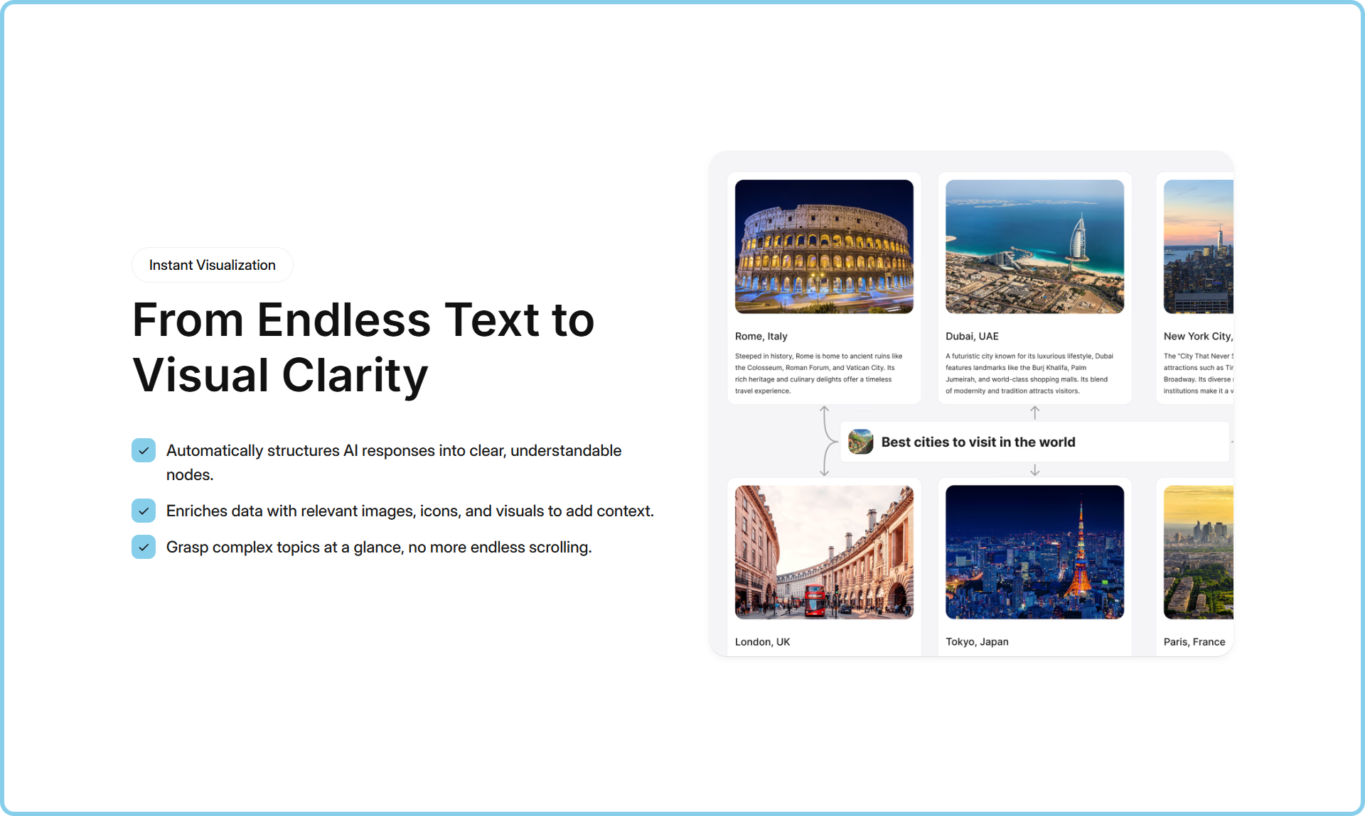 ## 概要 生成型UIを活用する視覚的思考者向けAIワークスペース。会話を無限キャンバス上の視覚マインドマップへ変換し、思考を見える化・アイデアの連携・新しい方向性の探求を文脈を失わずに実現しま...