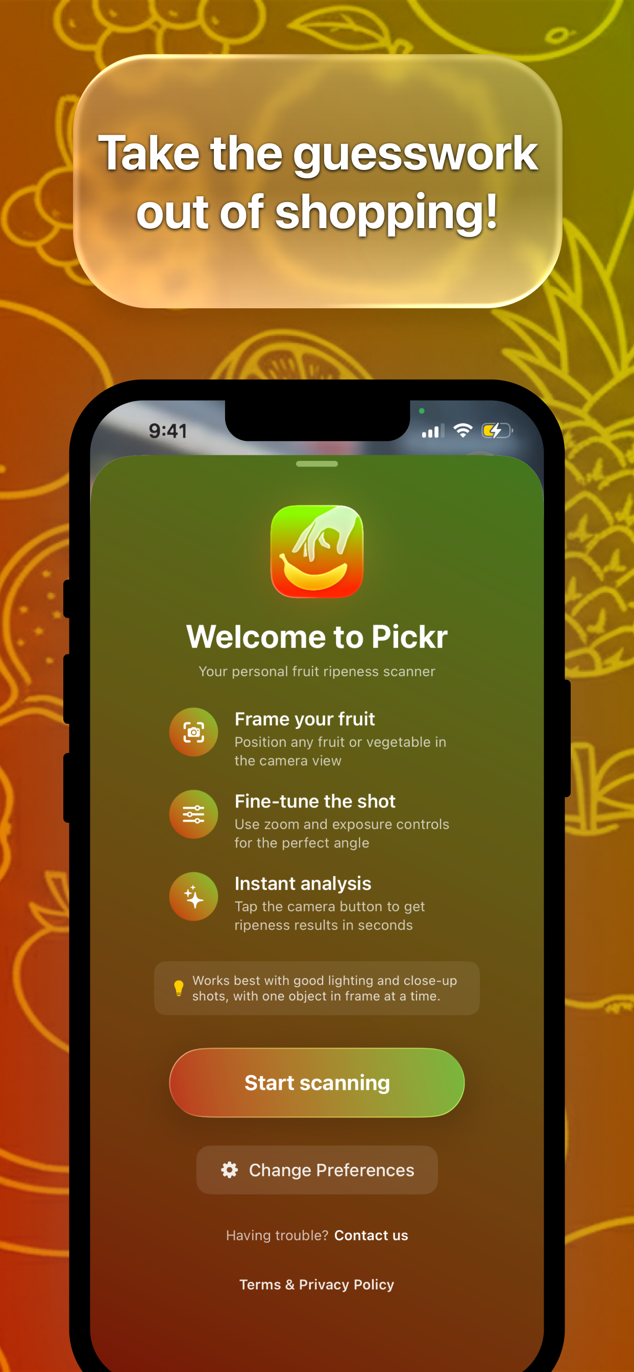 ## 概要 PickrはAIを活用した果物・野菜の熟度検知アプリ。カメラを起動して対象を映すだけで、未熟・熟れ・とても熟した・過熟・腐敗の5段階で食べ頃を即時表示します。推測、握る、匂いを嗅ぐ必...