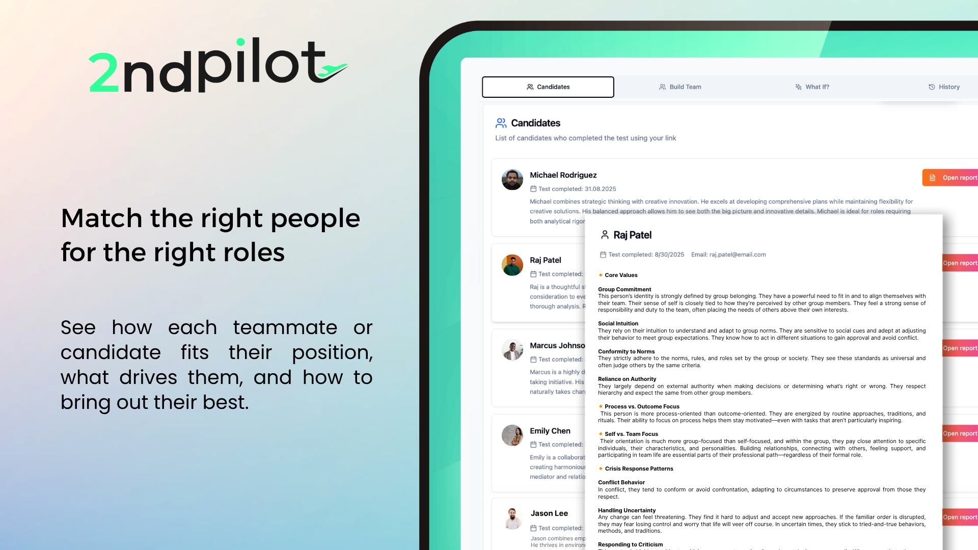 ##概要 2ndPilotは創業者・チーム・VCが対立・バーンアウト・失敗につながる前にリスクを予測するAI搭載の行動インテリジェンスプラットフォームです。共同創業者の適合性を評価し、危機シナリ...