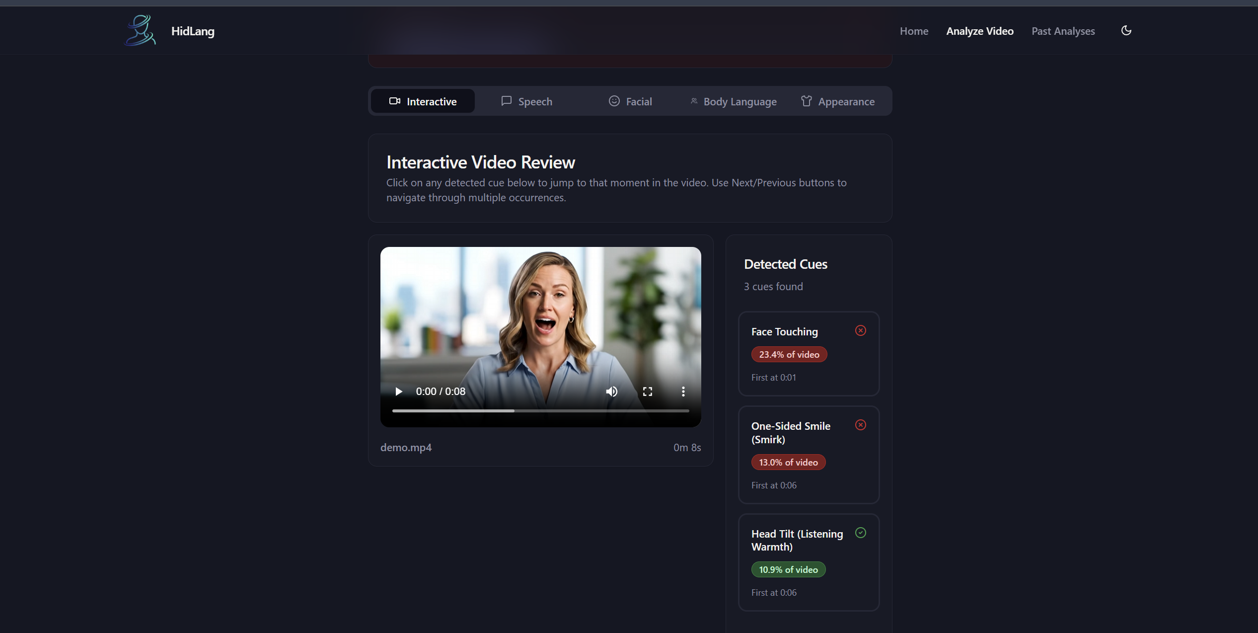## 概要 プレゼン動画を分析し、身振り手振り・話し方・プロフェッショナルな印象をAIが即座に評価します。 ## 主な特徴 - 即時フィードバック - 客観的な評価 - 改善点を具体的な練習に...