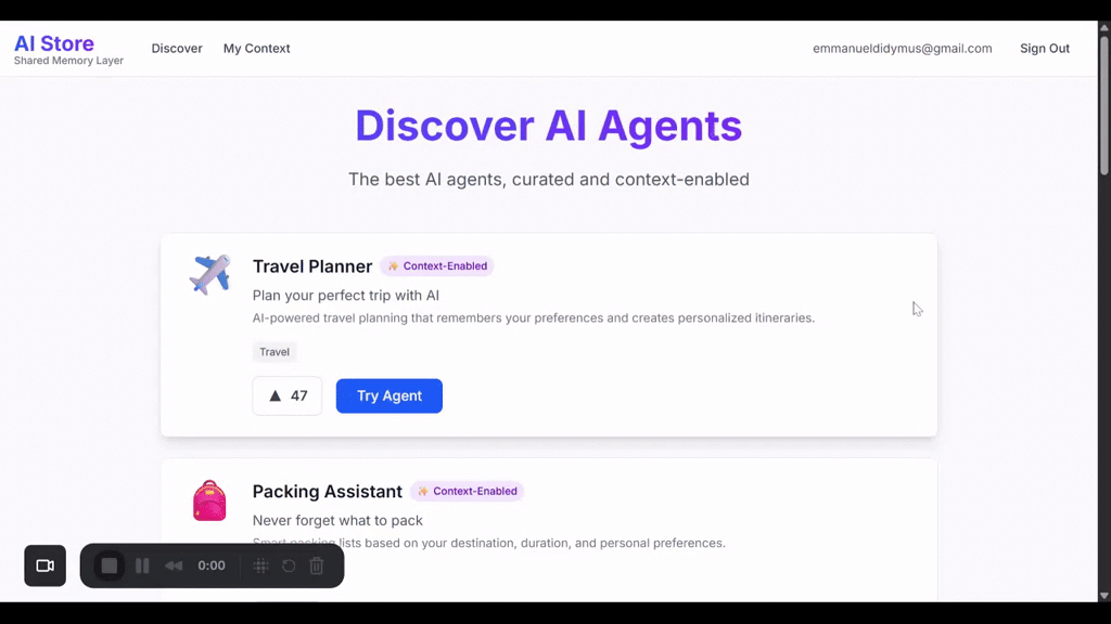 ## 概要 AIは便利だが、アプリ間であなたの記憶を持たない。嗜好・文体・進行中のタスクは引き継がれず、毎回自己紹介を求められていた。あなたが管理できる共有メモリ層を備えたAIアプリストアを提供...