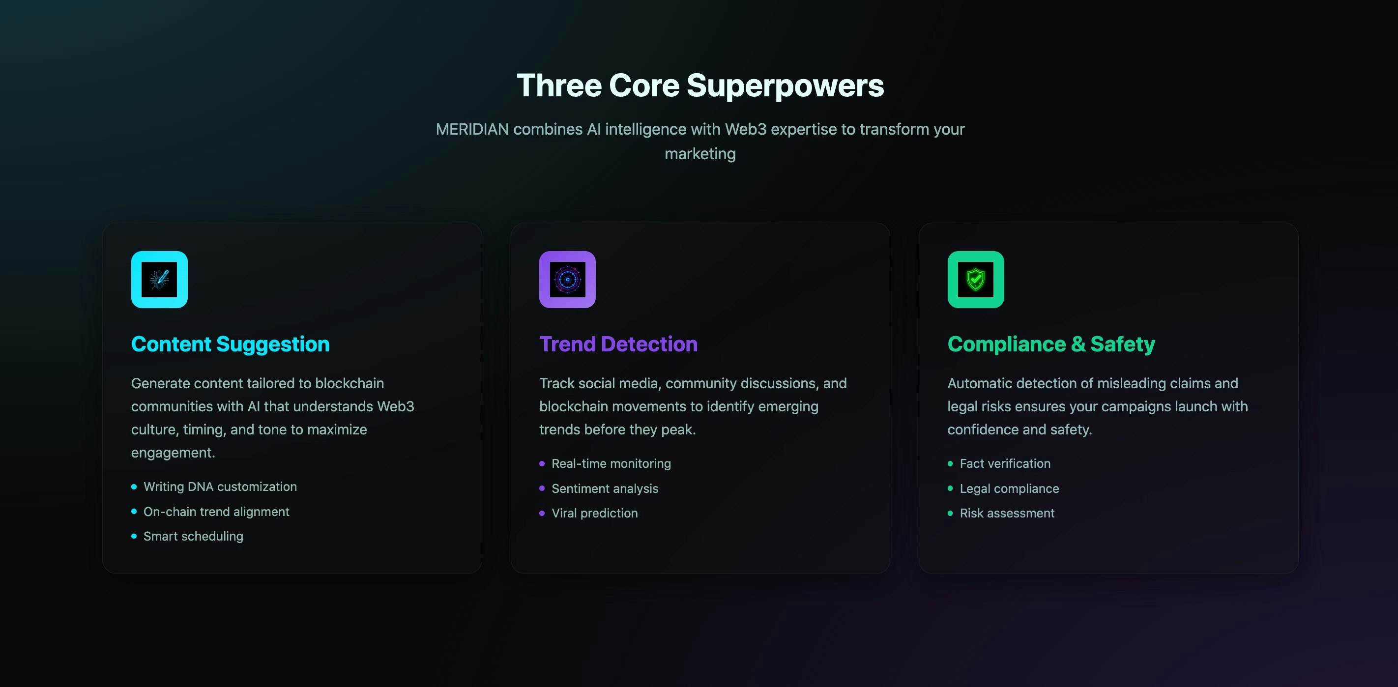 ## 概要 Web3マーケター向けに特化した3-in-1 AIエージェント。リアルタイムのトレンド検知、文化的に適合したコンテンツ作成、自動の事実検証とコンプライアンスを統合。 ## 特徴 -...