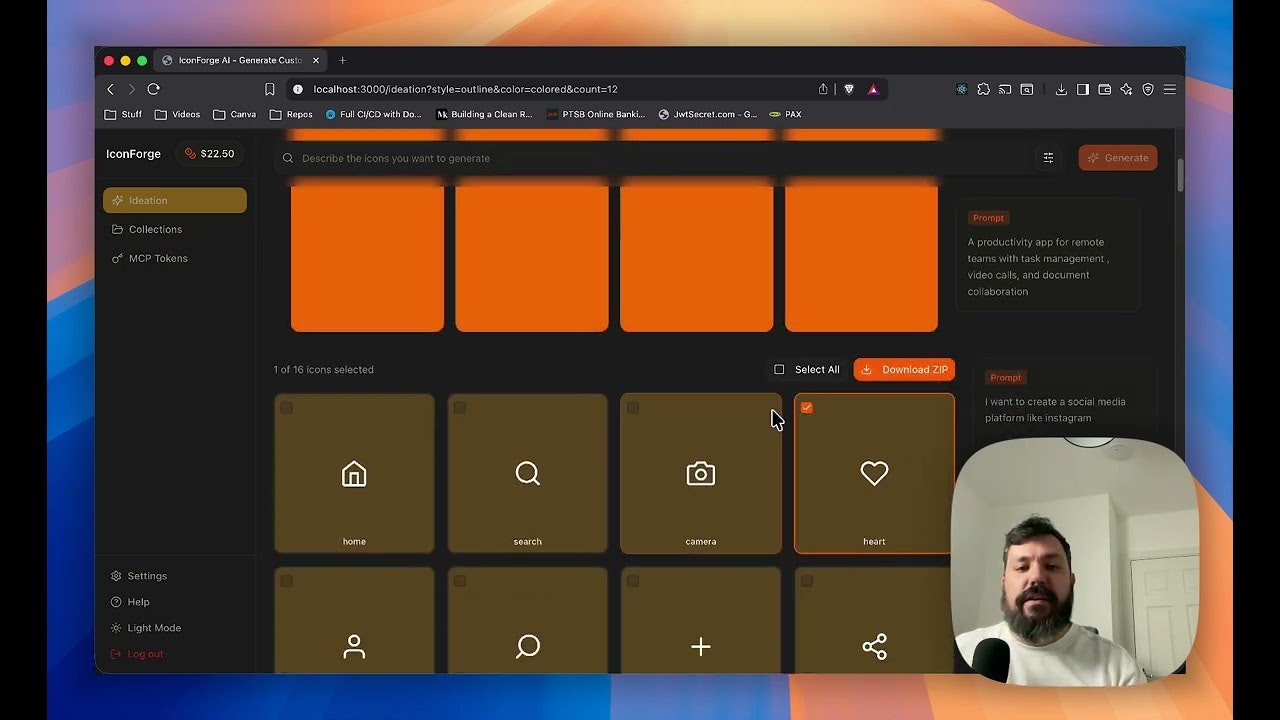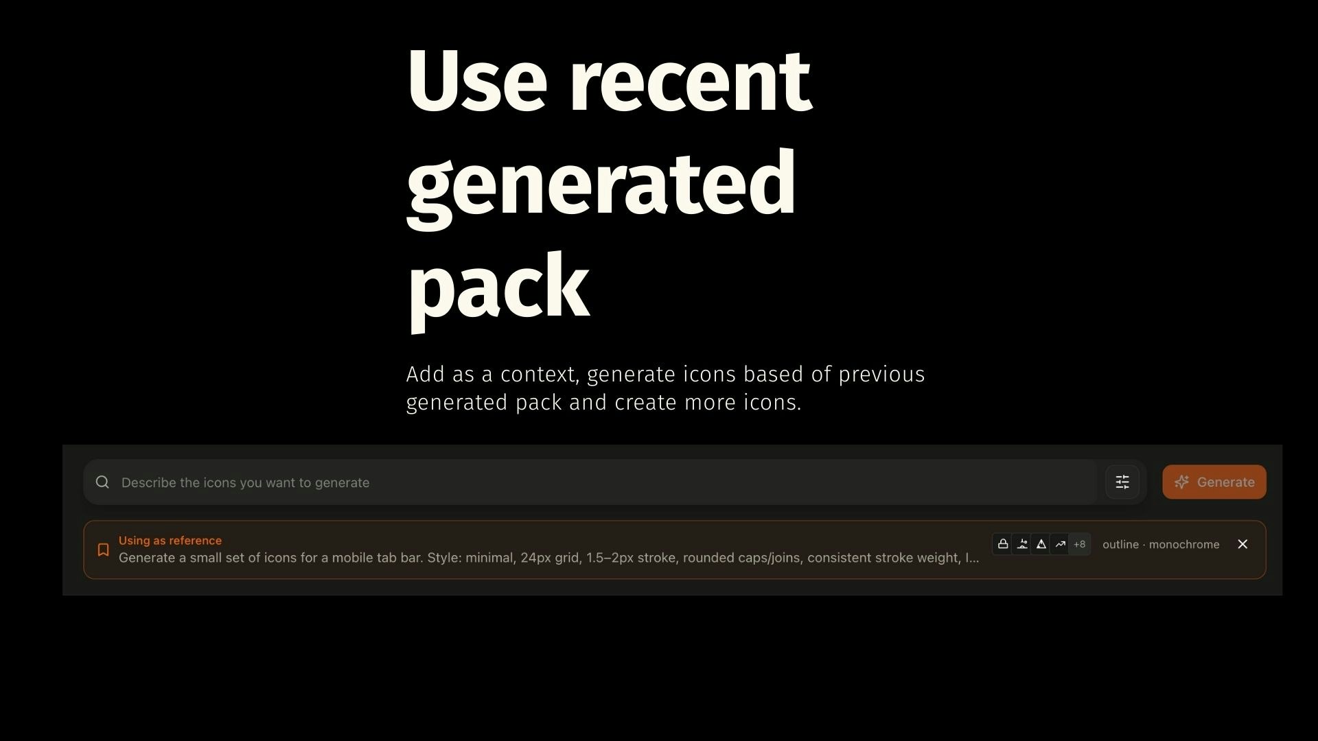 ## 概要 AIを活用したアイコン生成ツール。プロジェクトのスタイルに合わせたカスタムSVGアイコンパックを自動で作成します。 ## 特徴 - プロンプトベースでアイコンを生成 - アプリにキ...