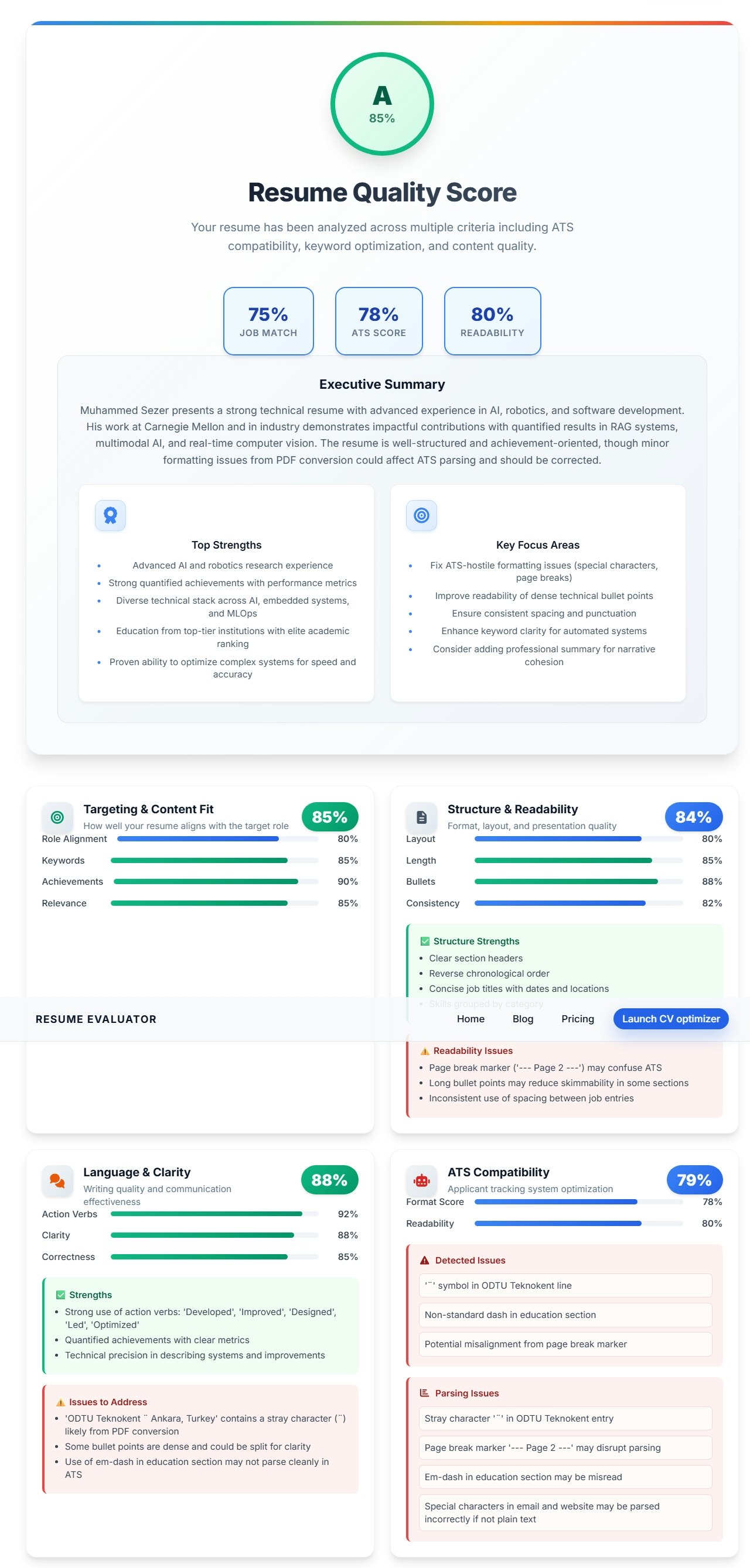 ## 概要 AtsGradeは、ATSが履歴書をどう解釈するかを無料で模擬するAIツール。4つの柱でスコアを付けます。 ## 特長 - 即時スコア - 4軸: ターゲティング、構造、言語、AT...