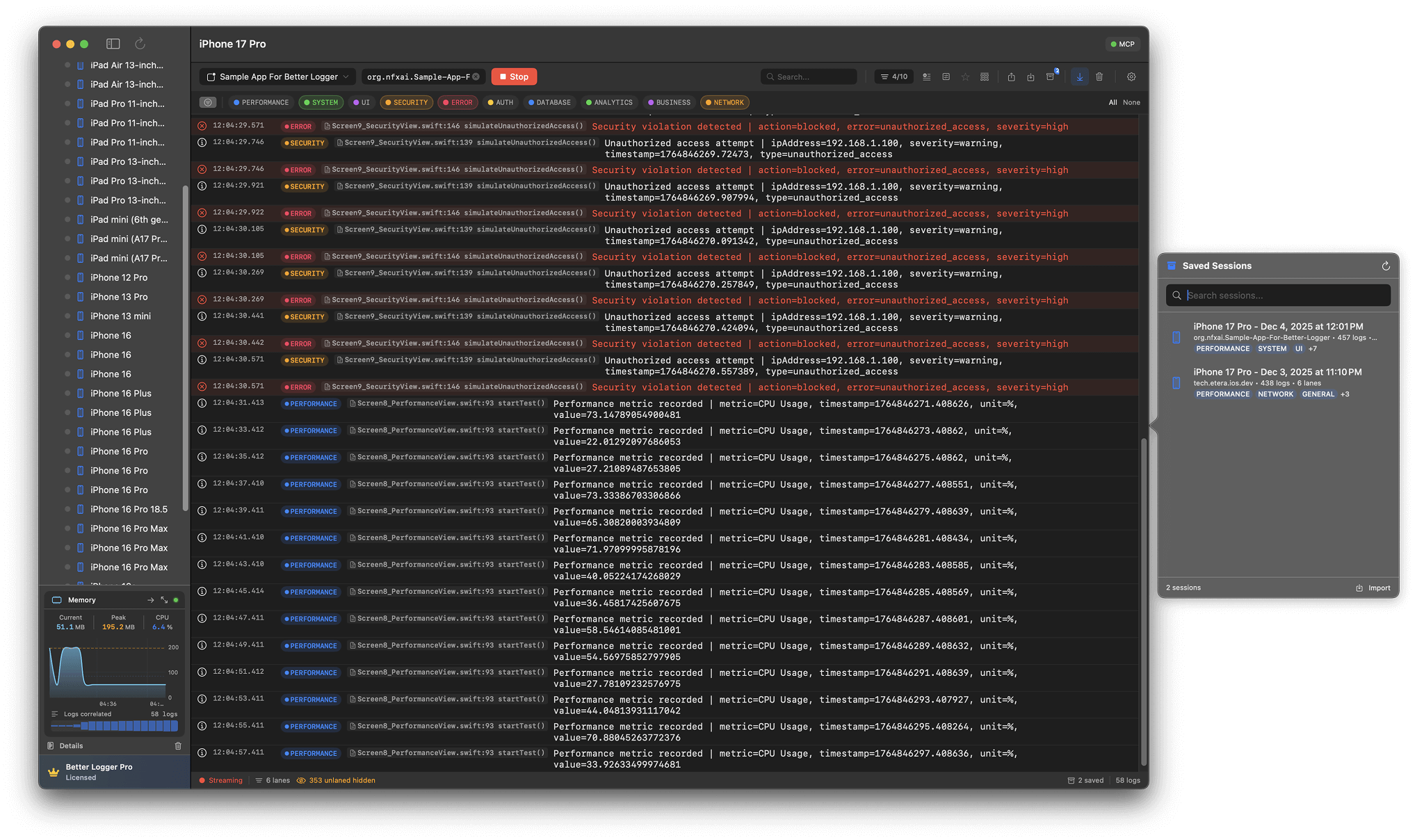 macOS向けのモダンなログビューア。iOS開発者向け、MCP対応。