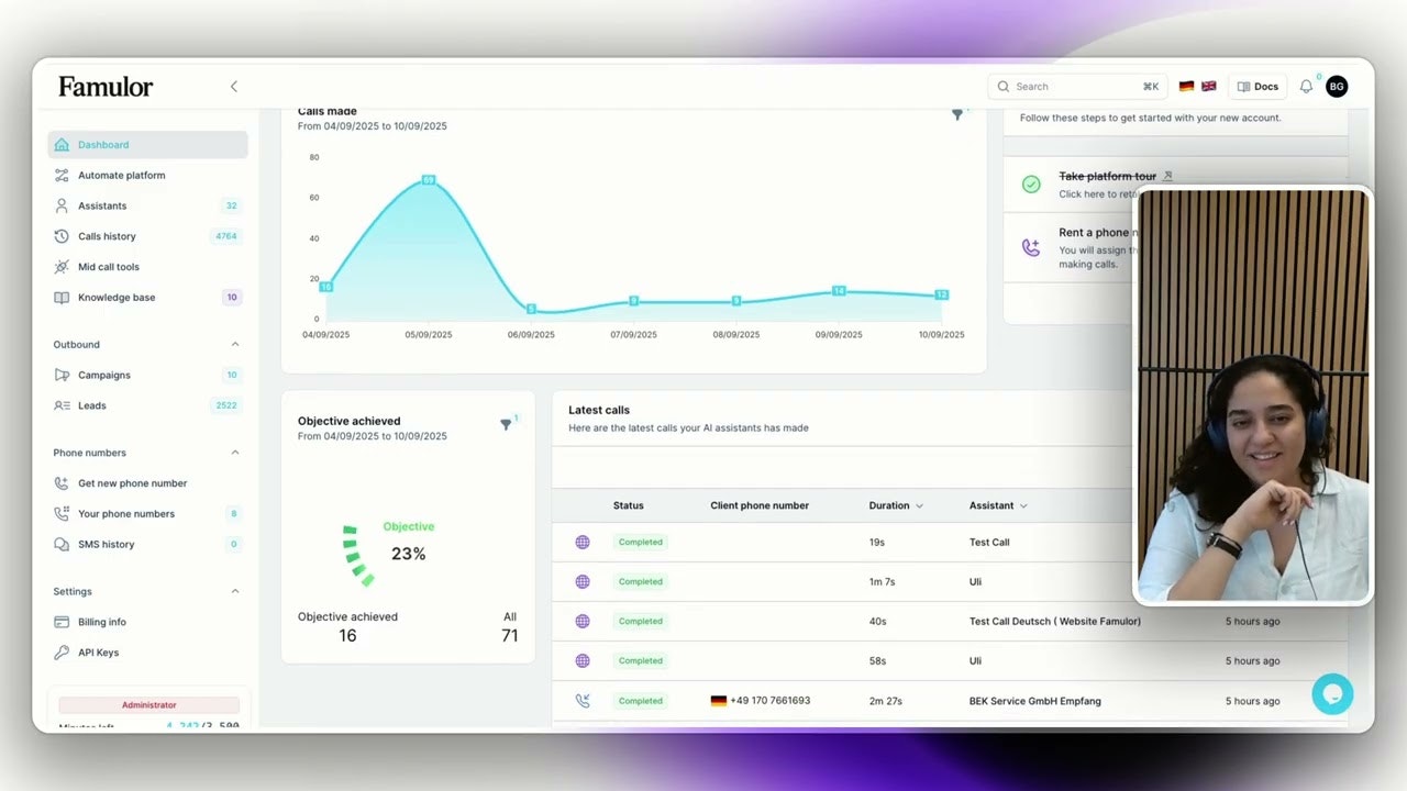 ## 概要 Famulorは電話・ライブチャット・WhatsApp・Meta Messengerをリアルタイムで処理する超高速AIアシスタントです。リードを逃さず、問い合わせを自動で判定・日程調...