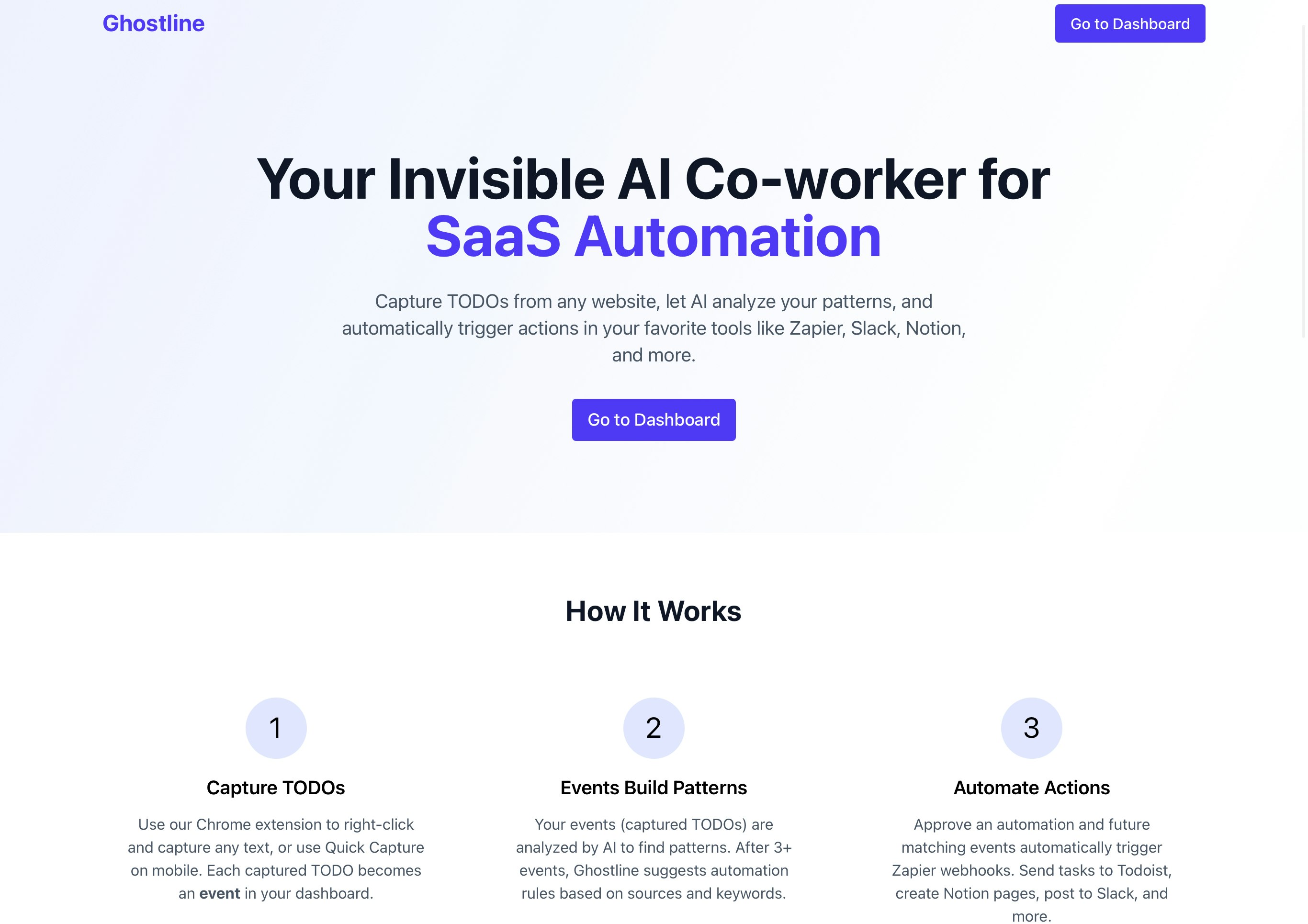 Ghostlineは、SlackやNotionなどのツールを跨いで作業を観察し、繰り返し発生するタスクを自動化する“見えない”AI運用レイヤーです。事前のフローやルールの設計は不要で、使い方を学...