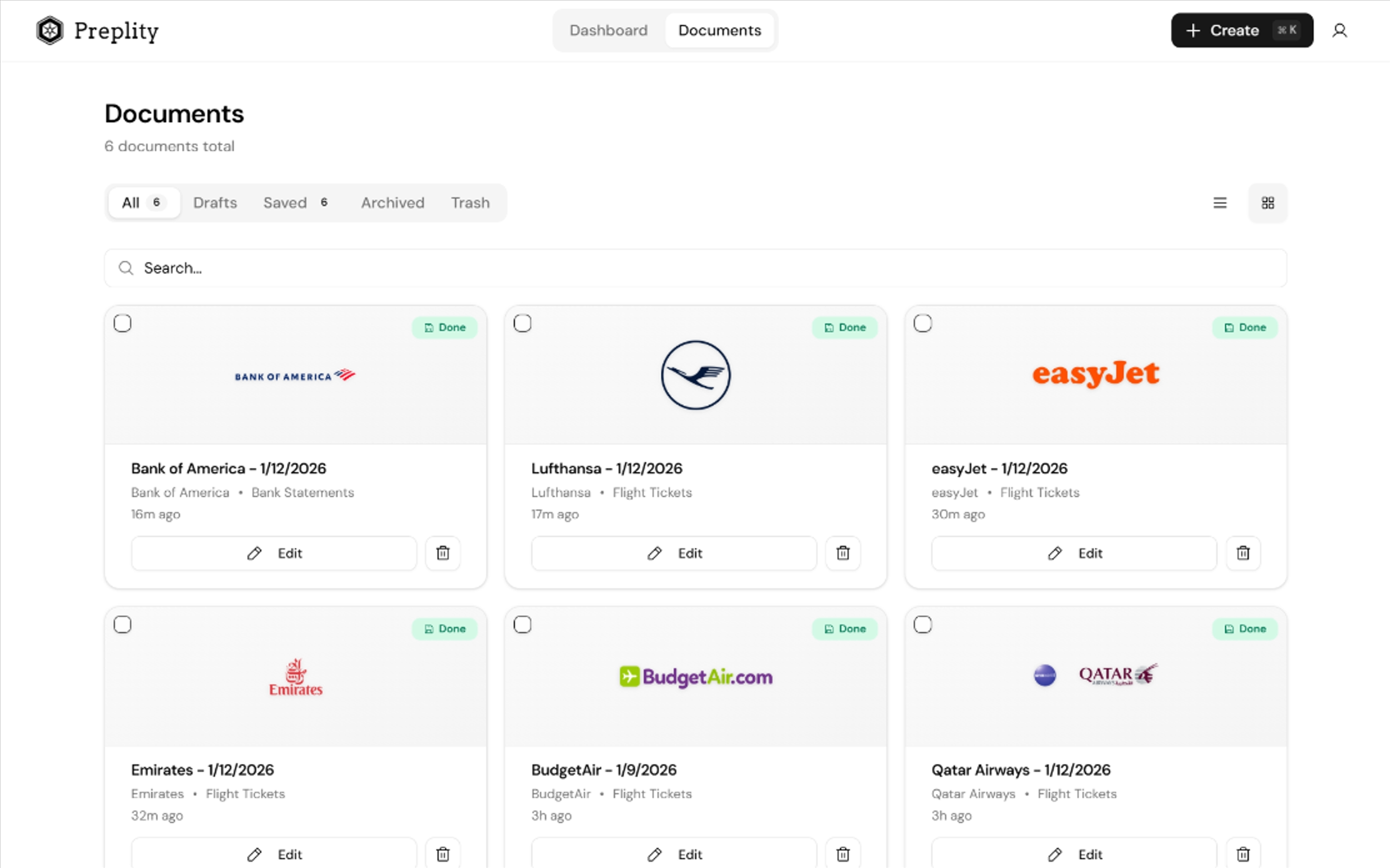 Preplityは、現実味のあるダミー文書の生成を目的としたAIツール。フライトチケット、銀行取引明細、居住証明、雇用証明書などをリアルに作成可能。ビザ申請用のダミー情報や資金証明、旅程文書の作...