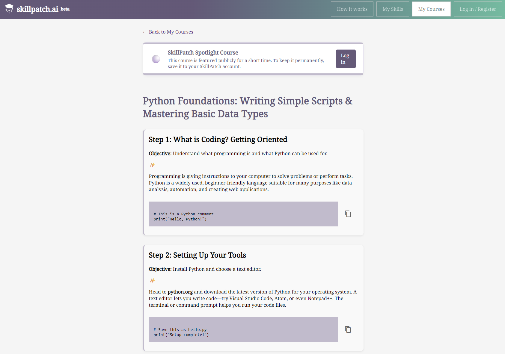現在のスキルと目標スキルに基づくAI搭載のコーディング講座