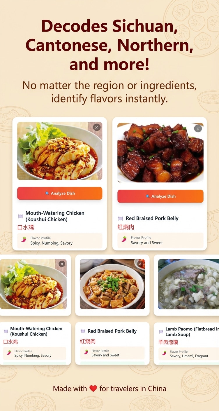 ## 概要 ChinaEaseは、翻訳だけでは伝わらない料理情報をAIで解釈して提供します。メニューや料理の写真を一枚撮るだけで、味の特徴・食材の有無・アレルゲン警告・外国人向けスコアを即座に表...