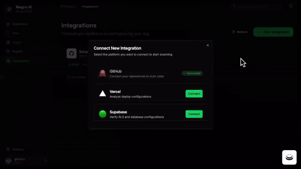Magnoは、AI生成のMVPを短時間でエンタープライズ品質のセキュリティを備えたSaaSへ変換するワンストップソリューション。GitHub・Vercel・Supabaseの接続、AIによる全ス...