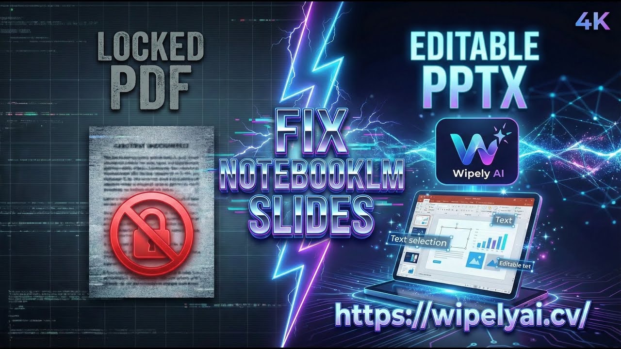Wipely AI は NotebookLM のスライドを編集可能な PPTX に変換するクライアントサイドのツールです。ネイティブ PPTX として実テキストとレイヤーを保持し、AI ヒーリン...