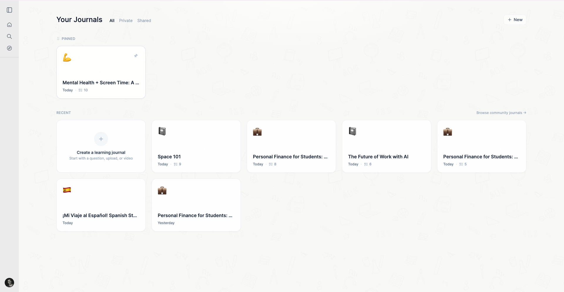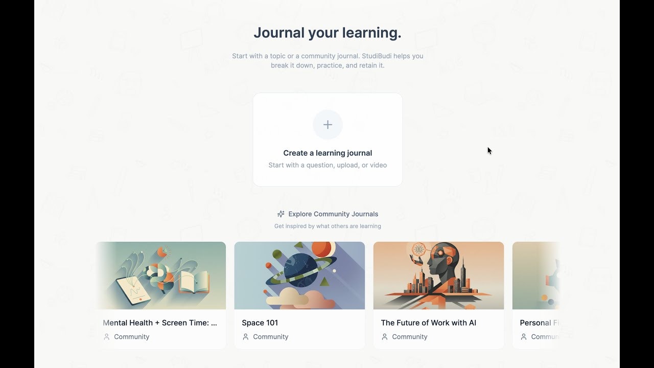 ##概要 個人AIチューター搭載の対話型学習ジャーナル。難解なトピックを分解し、学習内容を記憶に定着させる手助けをします。 ##特徴 - 学習素材(PDF/動画)とノートを1つのジャーナルで管...