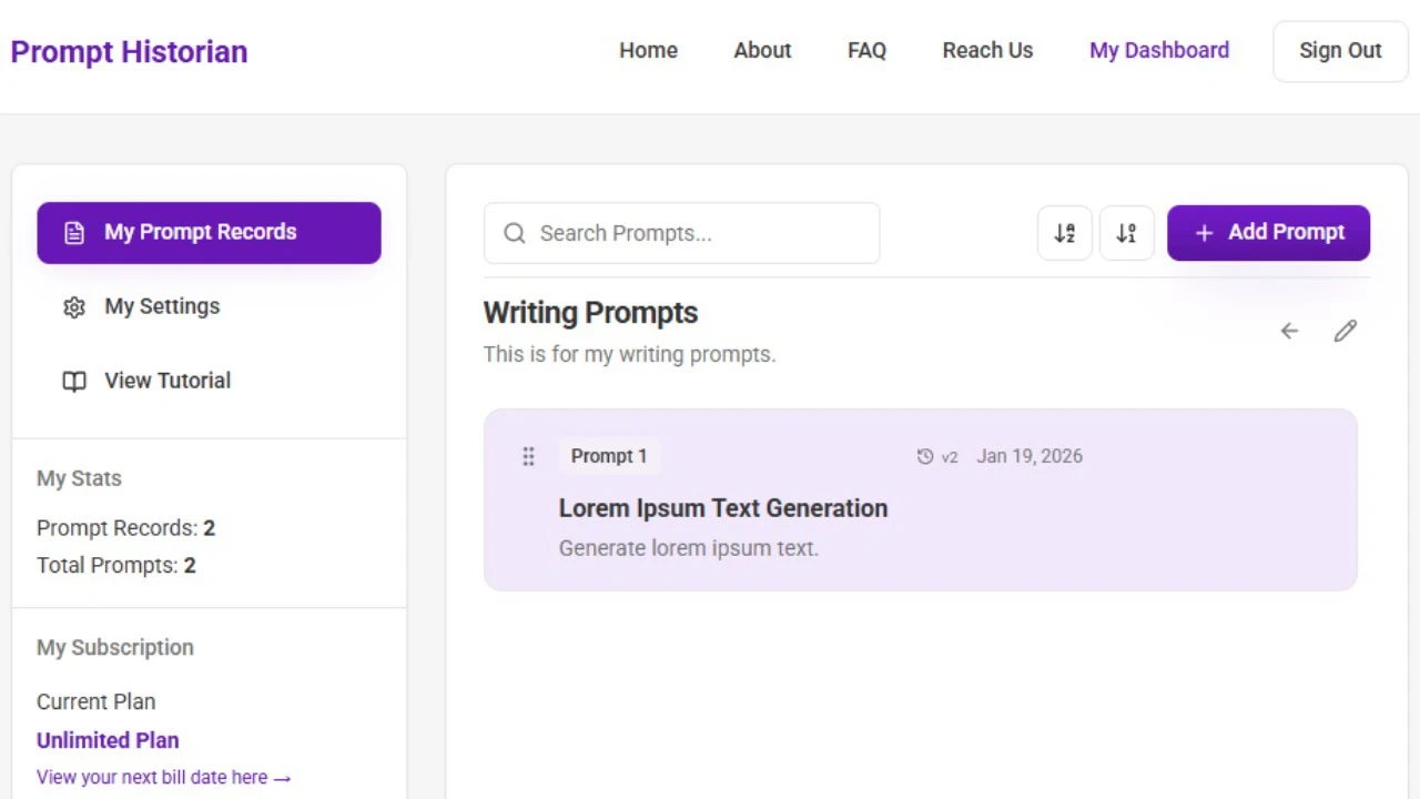 ## 概要 Prompt Historianは、プロンプトの記録作成・整理・検索・再利用を一元管理するツールです。 ## 主な機能 - プロンプトの記録を作成・整理・検索・再利用 - 編集履歴...