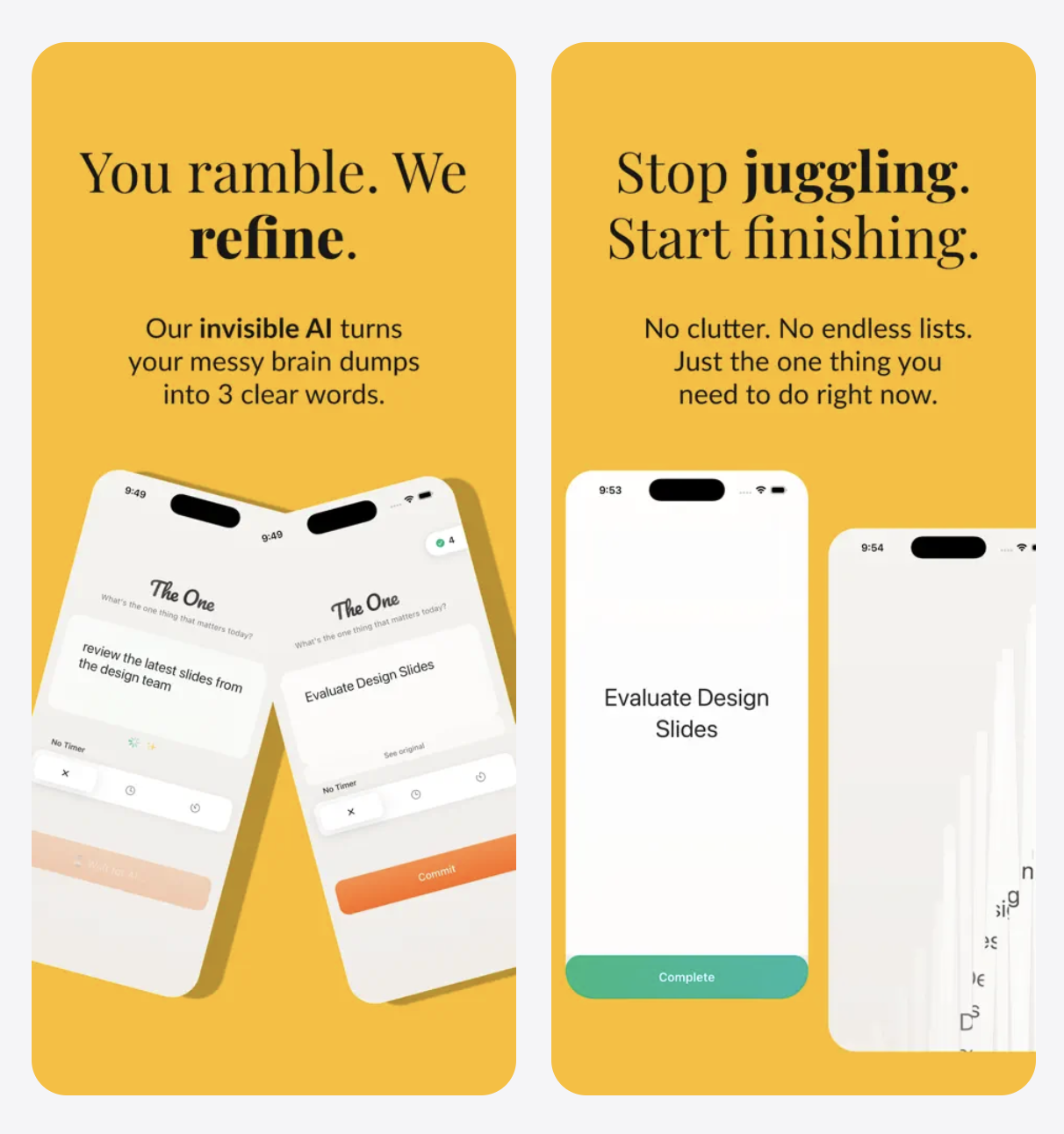 ## 概要 The Oneは従来のTo-Doリストの不安を解消する“アンチ・タスク・マネージャー”。1つの明確な目標に集中させ、入力した思考をAIが3語へ要約して画面をロック。2つ目のタスク追加...