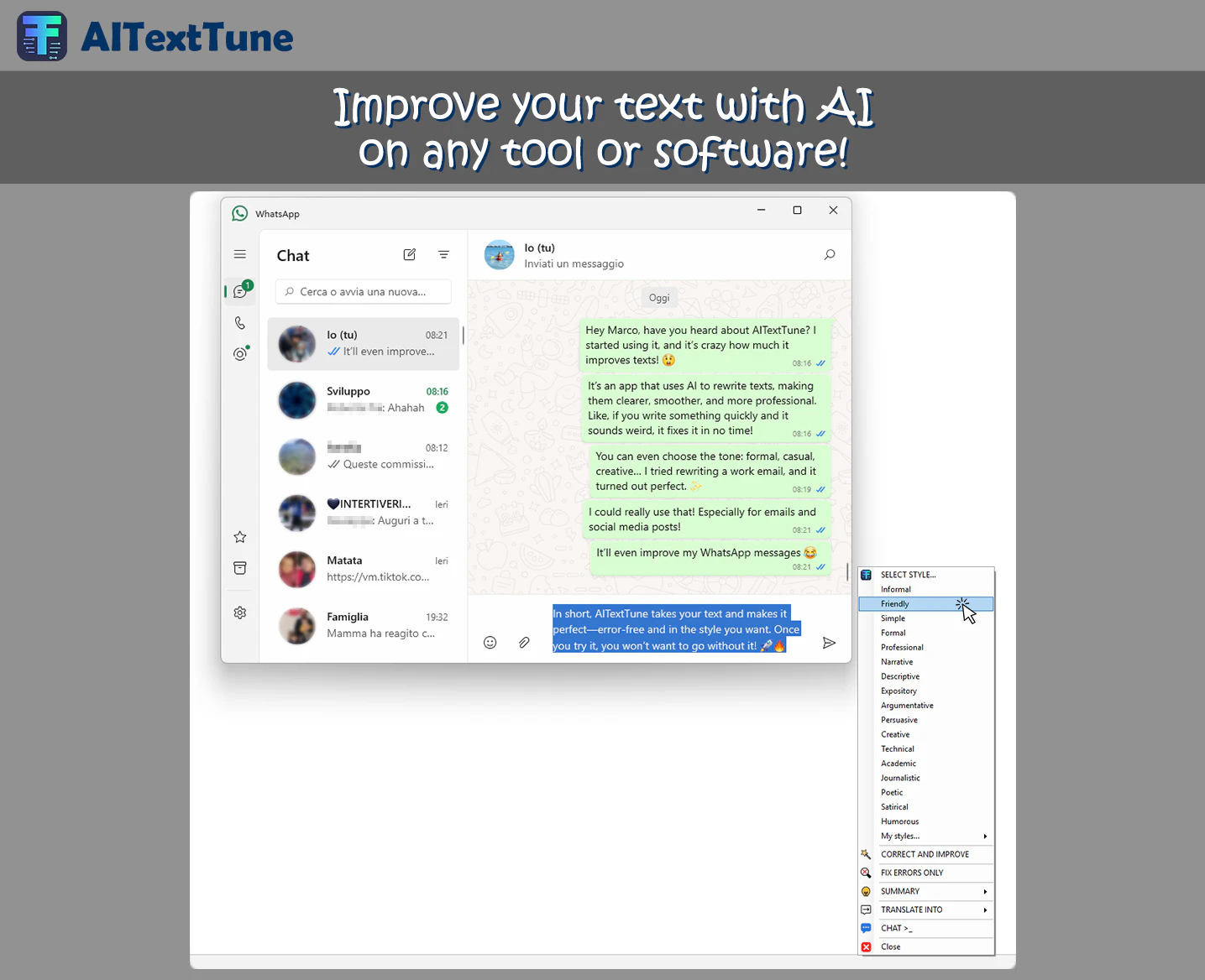 AITextTuneはWindows専用のAI文章改善ツール。1クリックで文法修正・明瞭さ向上・スタイル調整を実現。要約・解説・翻訳を多数言語で提供。どのツール上でも利用可能で、知識レベルに合わ...