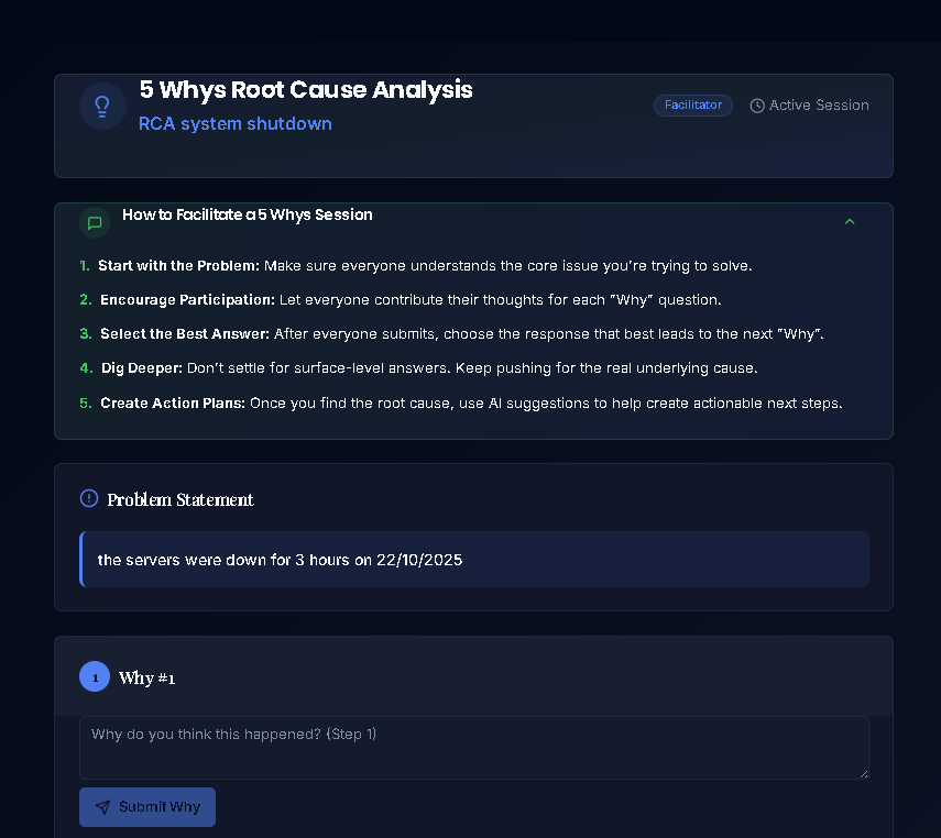 ## 概要 30秒でレトロスペクティブ・RCA・チームビルディングを実行できる3-in-1プラットフォーム。 ## 主な機能 - サインアップ不要のゼロフリクション開始 - ワンクリック共有の...