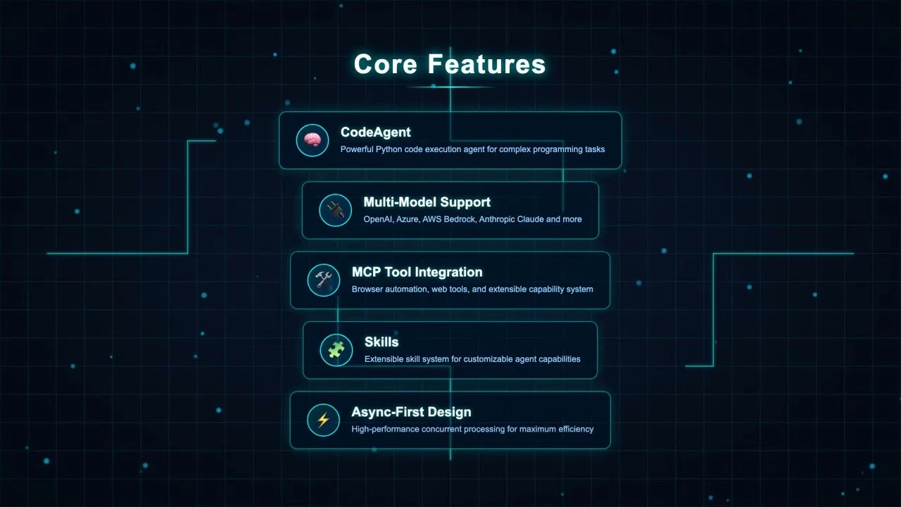 ## 概要 本番運用向けAIエージェントフレームワーク。PTCアーキテクチャとSkills・ツール探索ツール(TST)を核に、Reactループ依存を超えた高い拡張性と柔軟性を実現します。 ##...