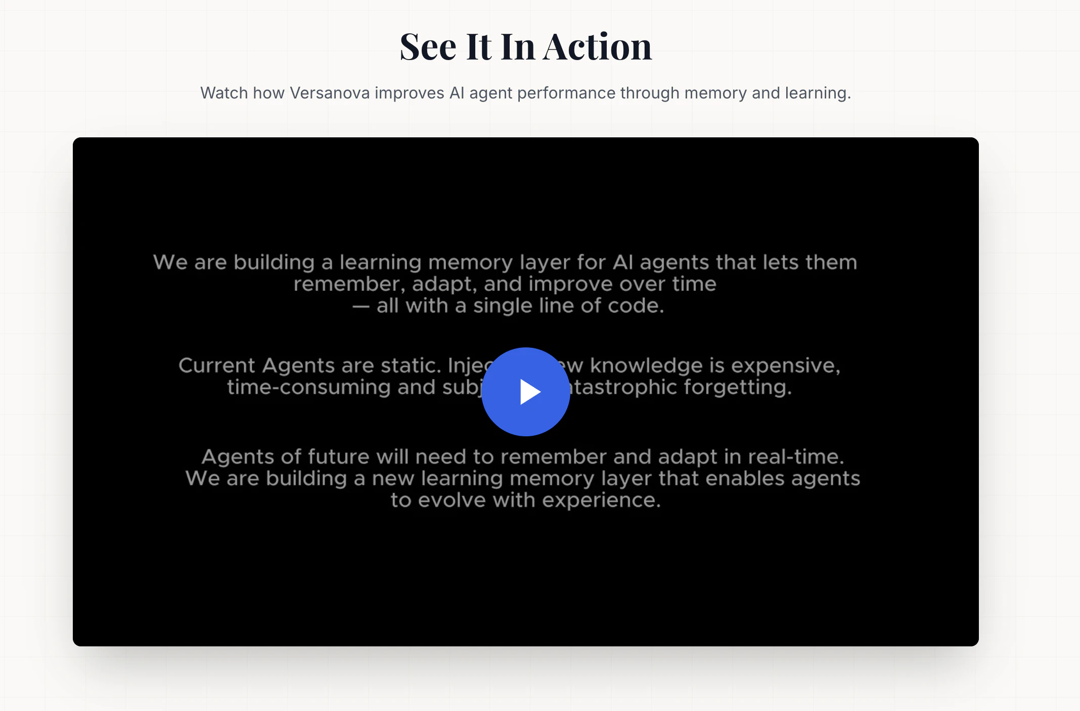 ## 製品概要 Versanovaは、LLMと記憶の隣に置く「学習レイヤー」を提供します。1行のコードでエージェントが記憶・適応・長期学習を連続的に実現し、実務ワークフロー全体で再利用可能な知識...