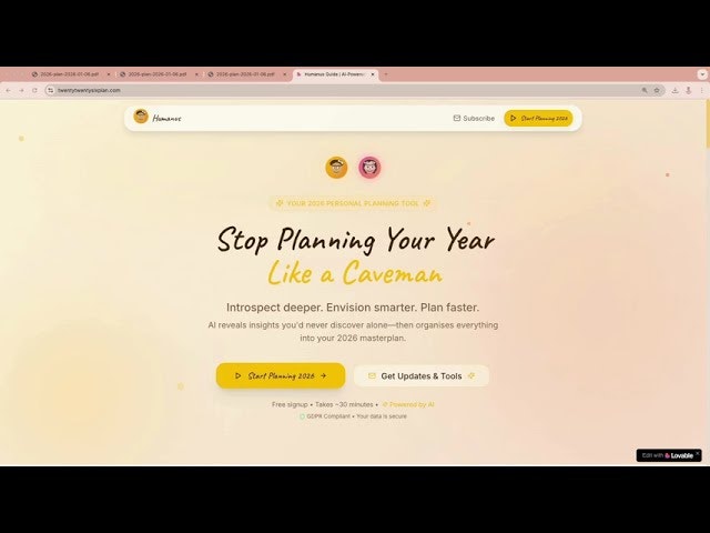 Humanusは、意味を重視したAI搭載の個人向けプランナー。2026年用に無料期間あり。複数の未来を探索し、現実生活に合わせた文脈対応の計画、PDFとダッシュボードを備えたマスタープランを提供...