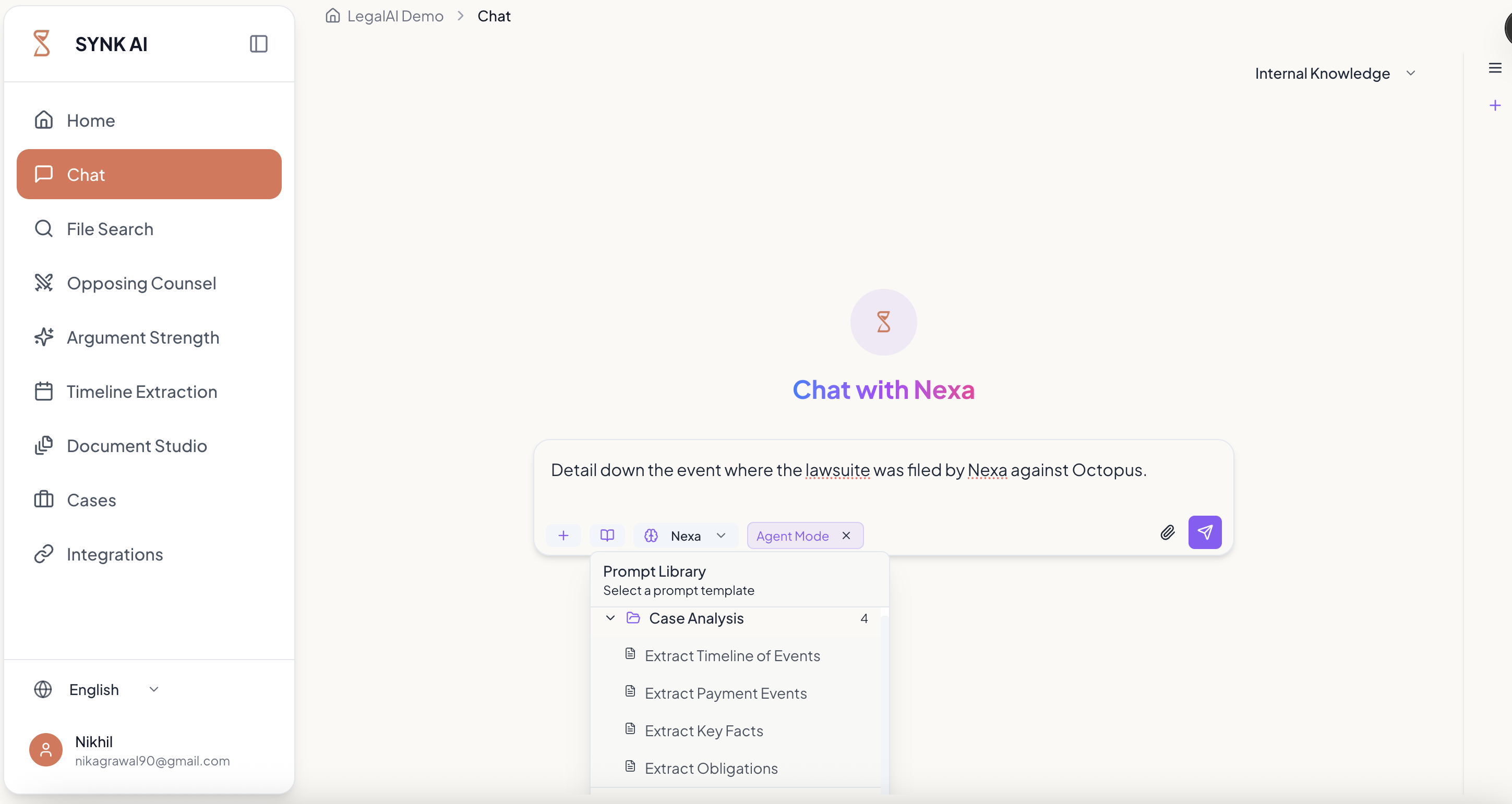## 概要 SYNK AIは法務プロフェッショナル向けのAI法務アシスタントで、ケース準備・文書分析・論点展開を効率化します。最先端AIと実務ワークフローを統合し、Case Analysis/C...