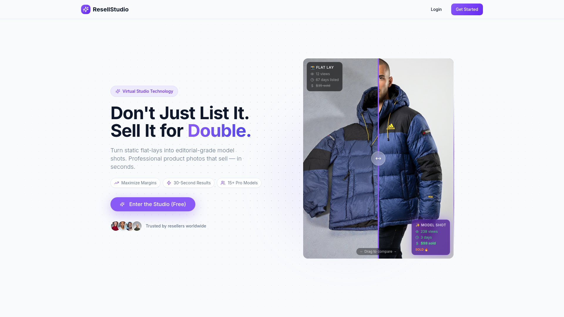 ## 概要 - フラットレイ写真を数秒でプロのモデルショットに変換するAI搭載ツール - 20以上のモデルポーズ、XS〜XXLの体型カバー、16モデル以上 - 衣類の状態・欠陥を自動検出し、信頼...