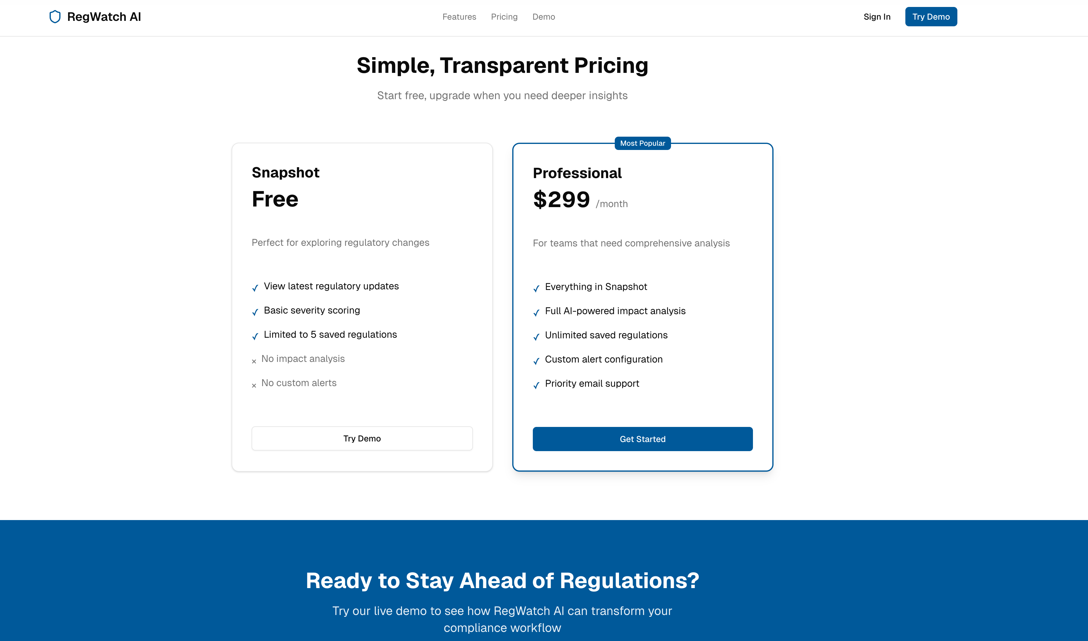 ## 概要 RegWatch AIは、米国AI規制について日々の明確さを提供します。複雑な法規・政策の更新を、創業者・運用担当者・投資家・コンプライアンスチームが使える平易な洞察へ翻訳。今日の変...