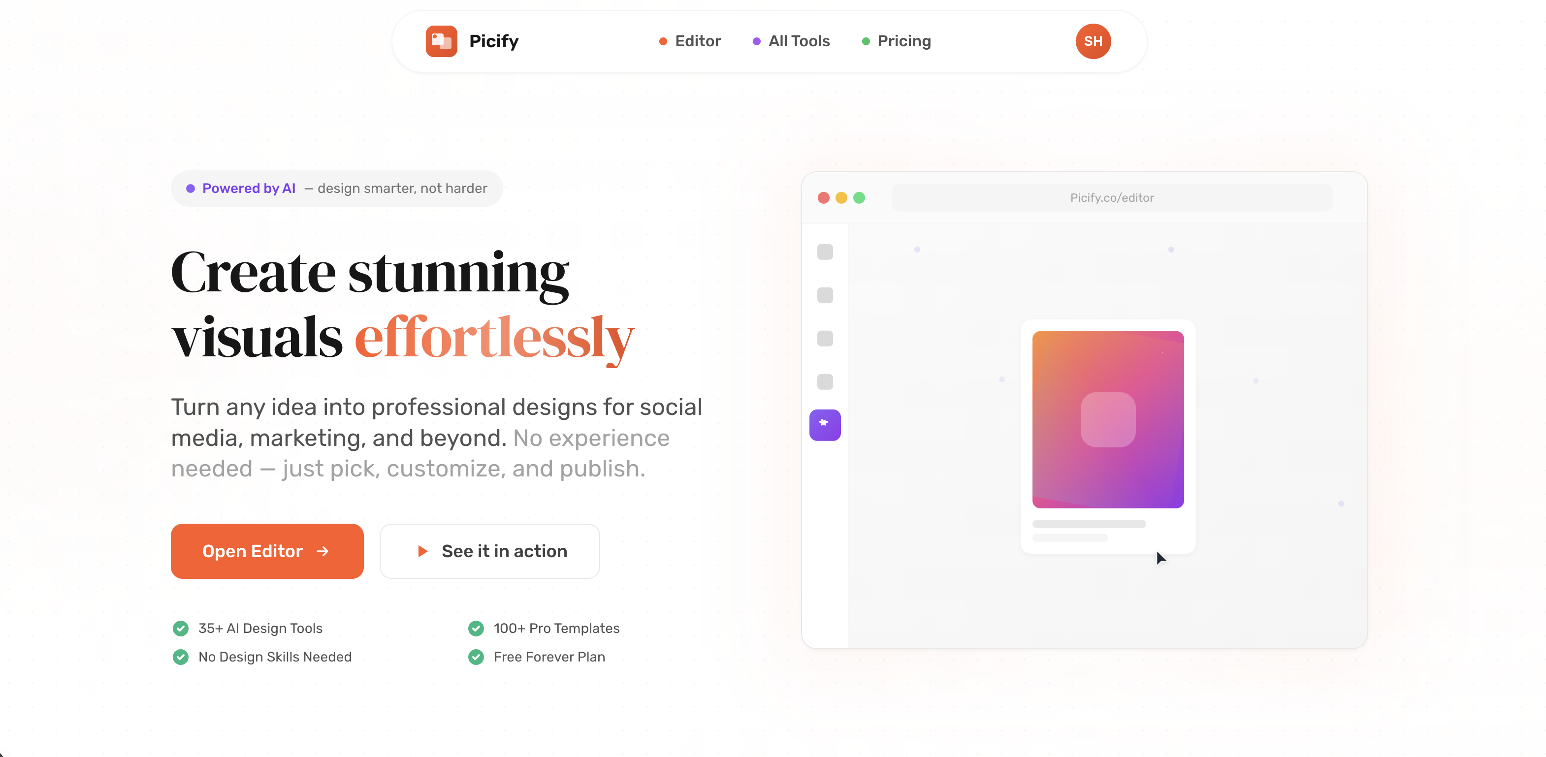 ## 概要 - ソーシャルメディアやマーケティング用の美しいビジュアルを、数分で作成できるデザインツールです。 - デザインスキルは不要。AI搭載のツール・テンプレート・使いやすいエディターを備...