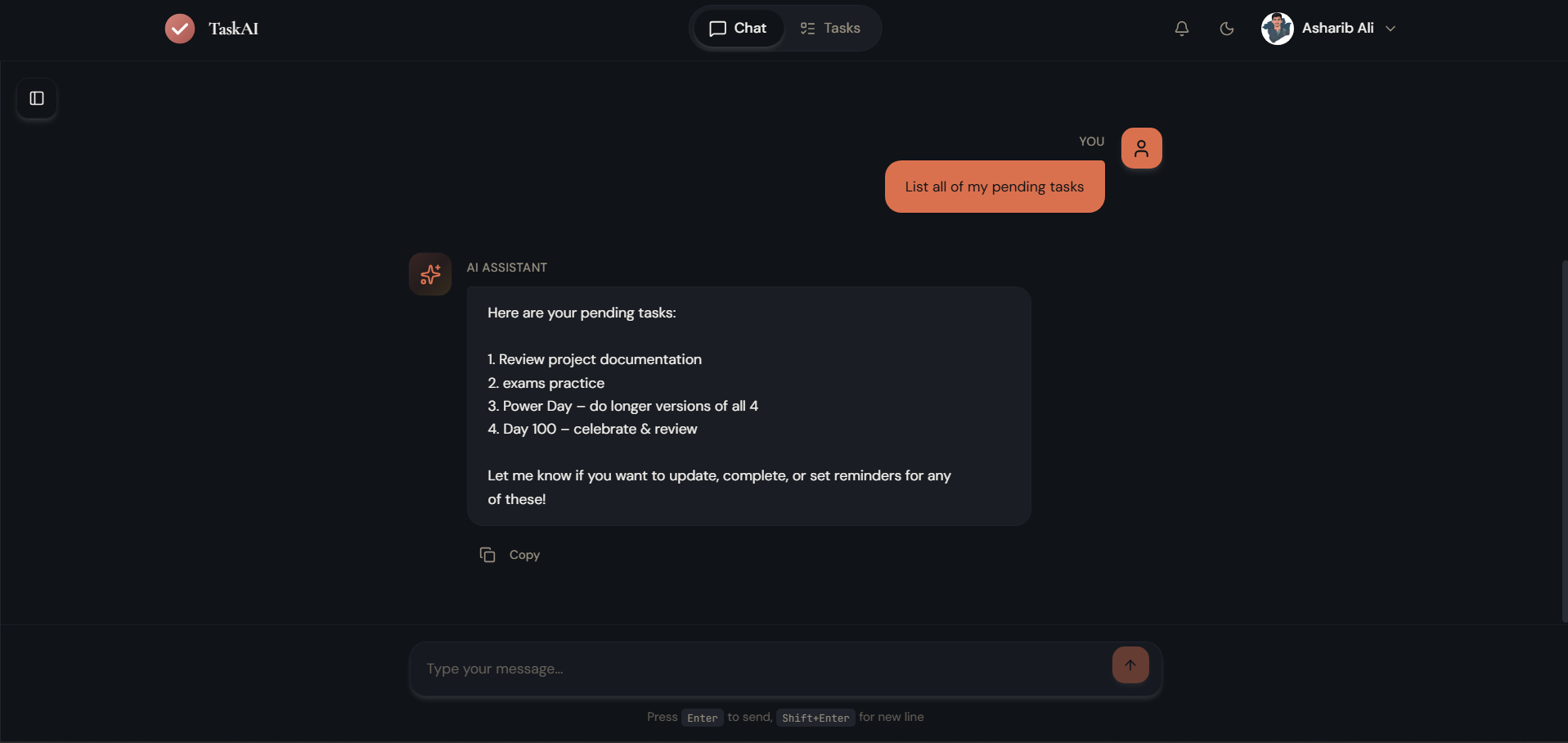 ## 概要 TaskAIは、会話型AIと従来UIの二重インターフェースを切り替えられる、柔軟なタスク管理アプリです。データは常に同期され、自然言語コマンドでタスクを操作できます。 ## 特徴 ...