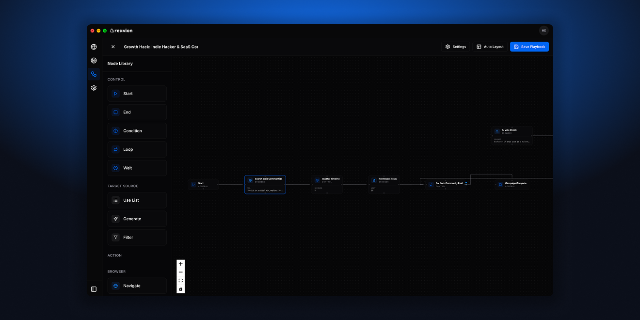## 概要 ReavionはAI搭載のブラウザで、アウトバウンドとGTM実行を自動化する自律エージェントです。ナビゲーション・リサーチ・読解・意思決定・実行を一貫して行い、繰り返しの作業を削減し...