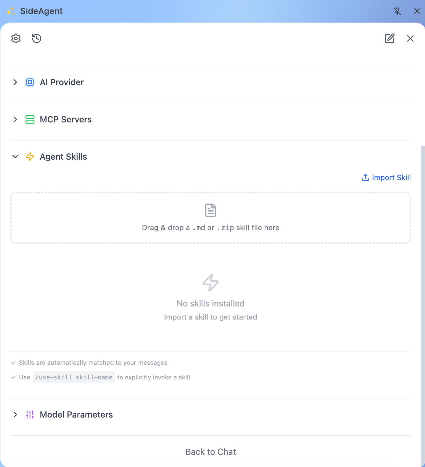 MCPとスキルに対応したオープンソースのAIサイドバー。
