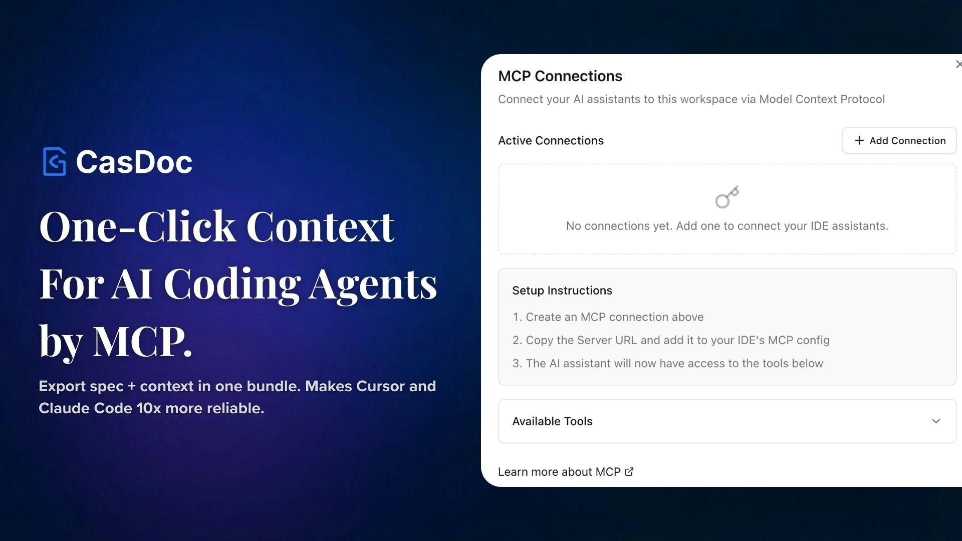CasDocは、アイデアから実装コードへ移行する過程を変えるプラットフォームです。AIで専門的な仕様を生成するリライアブルなプロ仕様PRD・技術仕様・APIドキュメントを、カスタムテンプレートと...