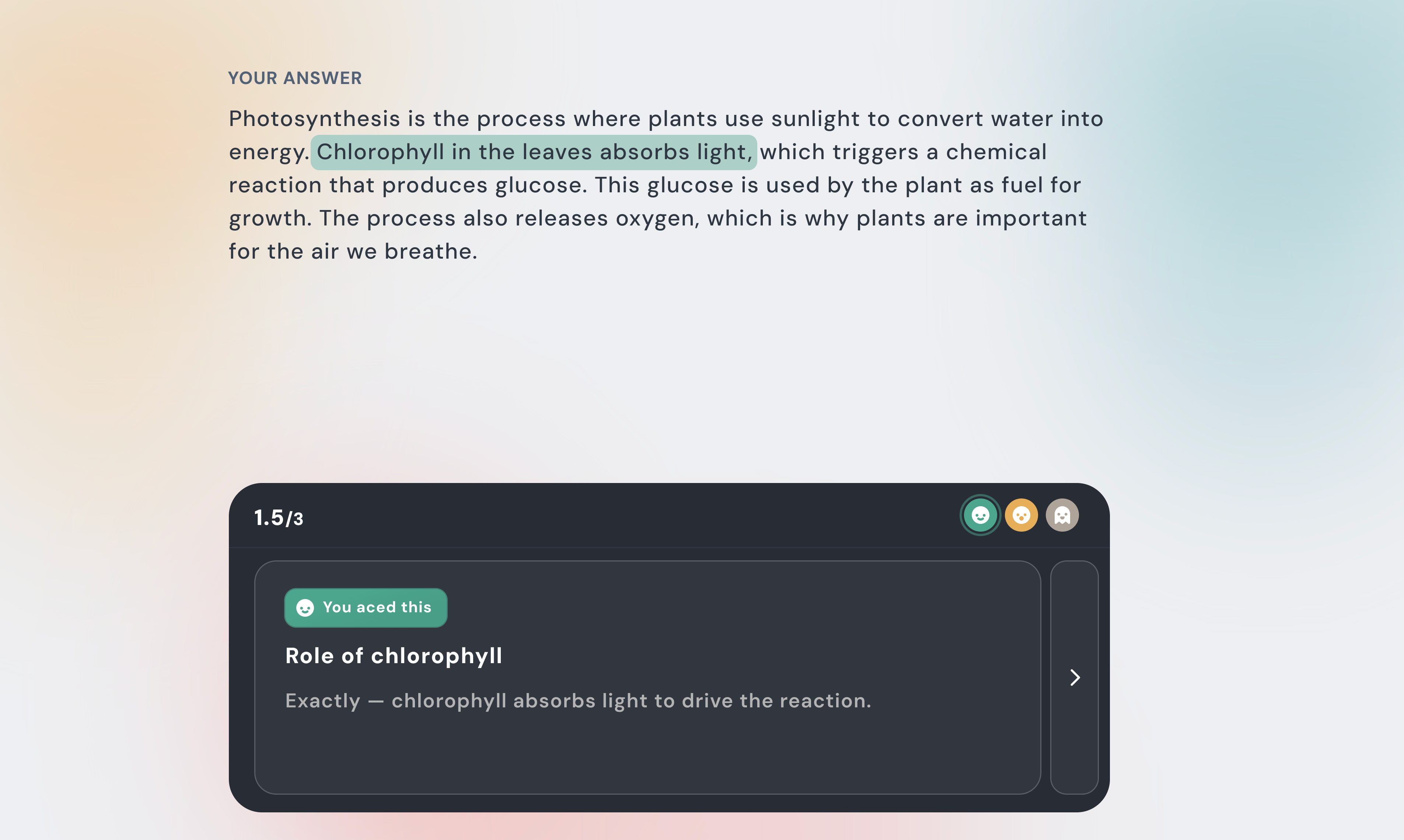 ##概要 Akonoは“実践を第一に”するAI学習ツール。要約やフラッシュカードでなく、自分の言葉で解答を作り、思考過程に対する詳しい注釈付きフィードバックをAIから受け取る点が特徴です。AIは...