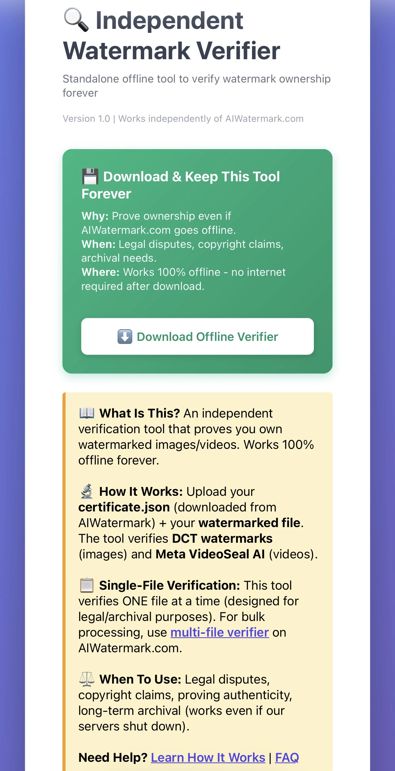## 概要 AIWatermarkは、見えない水印でコンテンツの所有権を証明する商用プラットフォーム。動画にはMetaのVideoSeal AI、画像にはDCT水印を採用し、圧縮や SNSでも水...