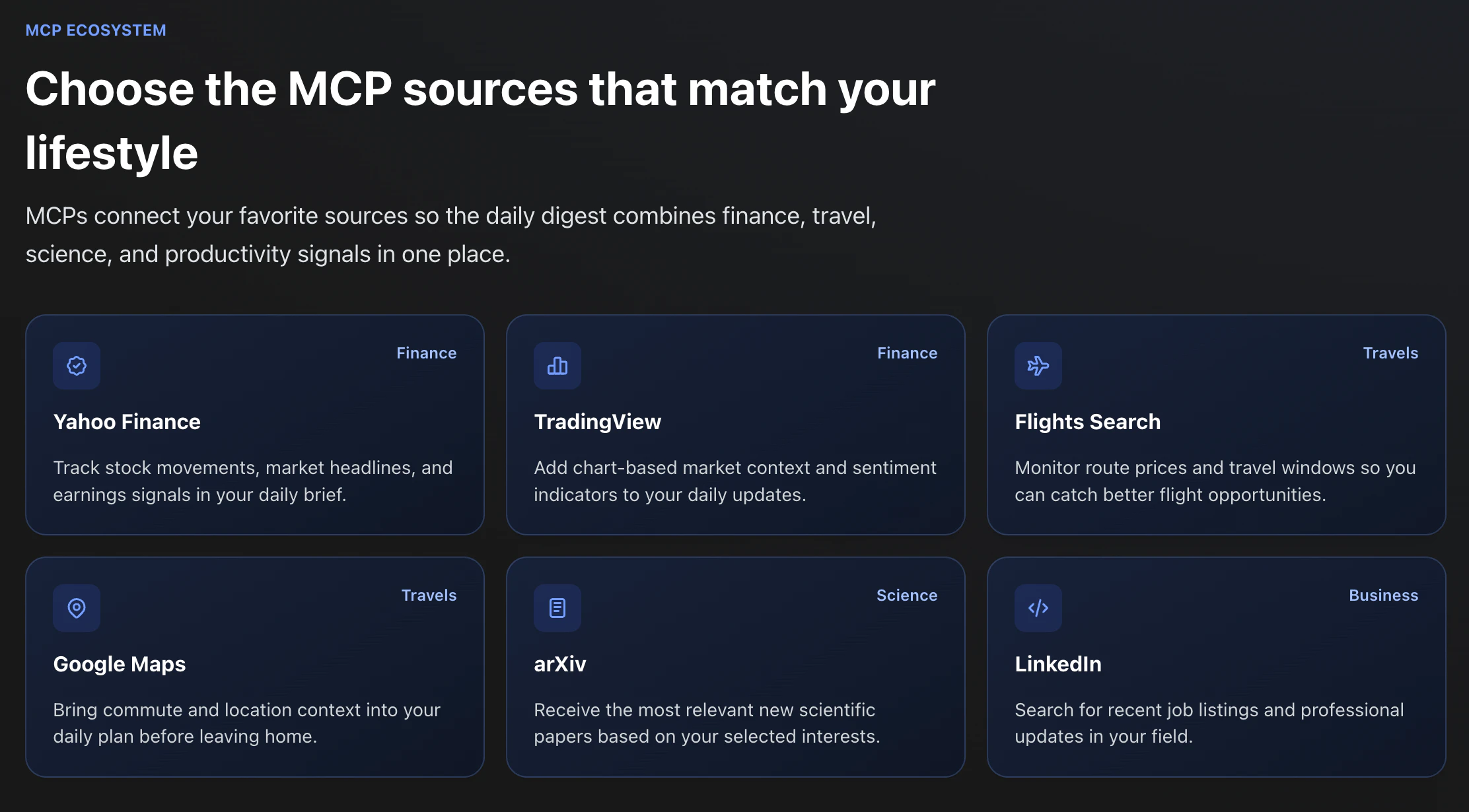 Daily Researchは、朝のスクロールを置き換えるAI搭載ニュースレター。ユーザーの関心(株式・フライト・AI・競合)を反映して、MCPツールとウェブ情報を統合し、毎朝8時に要点を絞った...