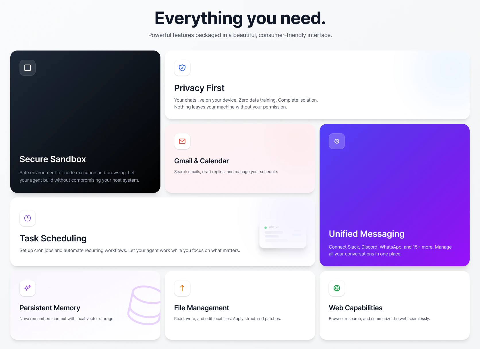 ## 概要 Novaは、PC上でローカルに動作する強力なAIアシスタントです。OpenClawを安全にワンクリックで起動し、最高峰のAIモデルと対話しながらタスクを自動化して作業を進めます。 ...