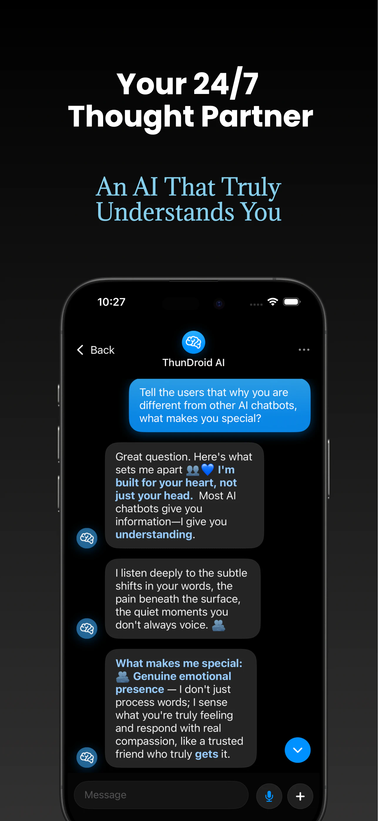 ## 概要 深夜の思考を支えるプライベートAIコンパニオン。CBT/DBT/ACTの技法を用いた無制限の対話、気分追跡付きの15のジャーナリング、12種類以上のエビデンスベースの呼吸法を提供しま...