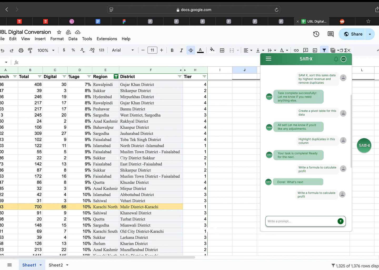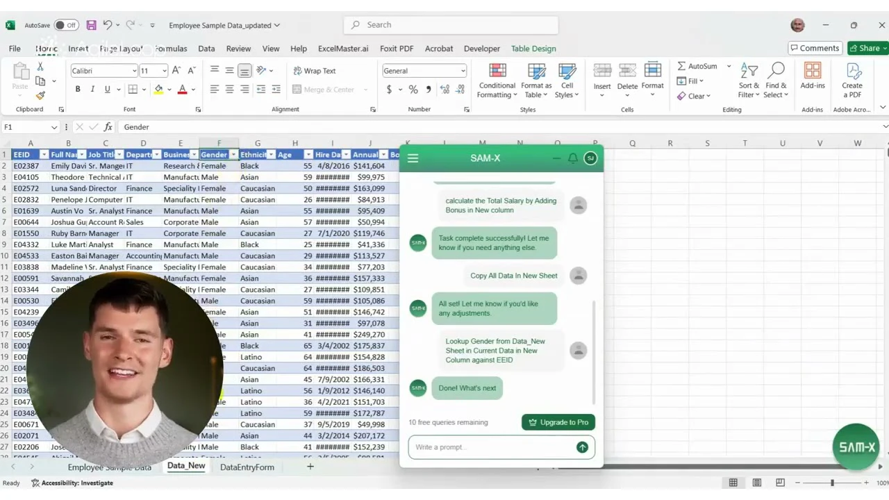 ##概要 SAM-Xは、スプレッドシート作業の脆さを取り除くAIコパイロット。英語の説明だけで、データ清掃・再構築・高度なフィルター・ルックアップ・計算・ピボットテーブル・チャート・ダッシュボー...