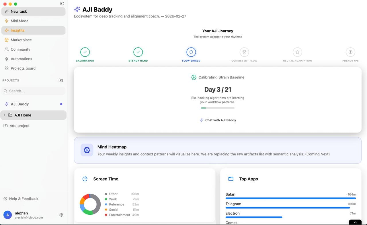 ## 概要 AJIはAI時代のオープンオペレーティングシステム。ツールの集合ではなく、作業を自動運転化する統合プラットフォーム。 ## 主な特徴 - Buddy: 作業量を監視 - Pill:...