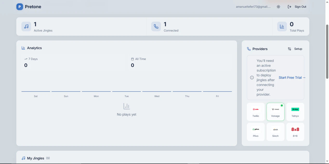 ## プロダクト概要 - Pretone は、電話着信前のブランド体験を AI 生成の短い音楽で提供します。 - 既存の電話システムを変更せず、数秒で生成・導入・ON/OFF が可能です。 - ...