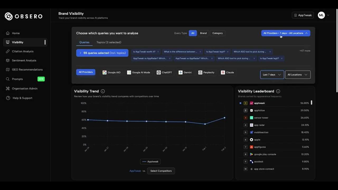 ## 概要 ObseroはAI検索でブランドの実際のパフォーマンスを可視化するマーケター向け分析ツールです。可視性・露出・センチメント・競合シェアを主要AIプラットフォーム全体で測定し、複雑なA...
