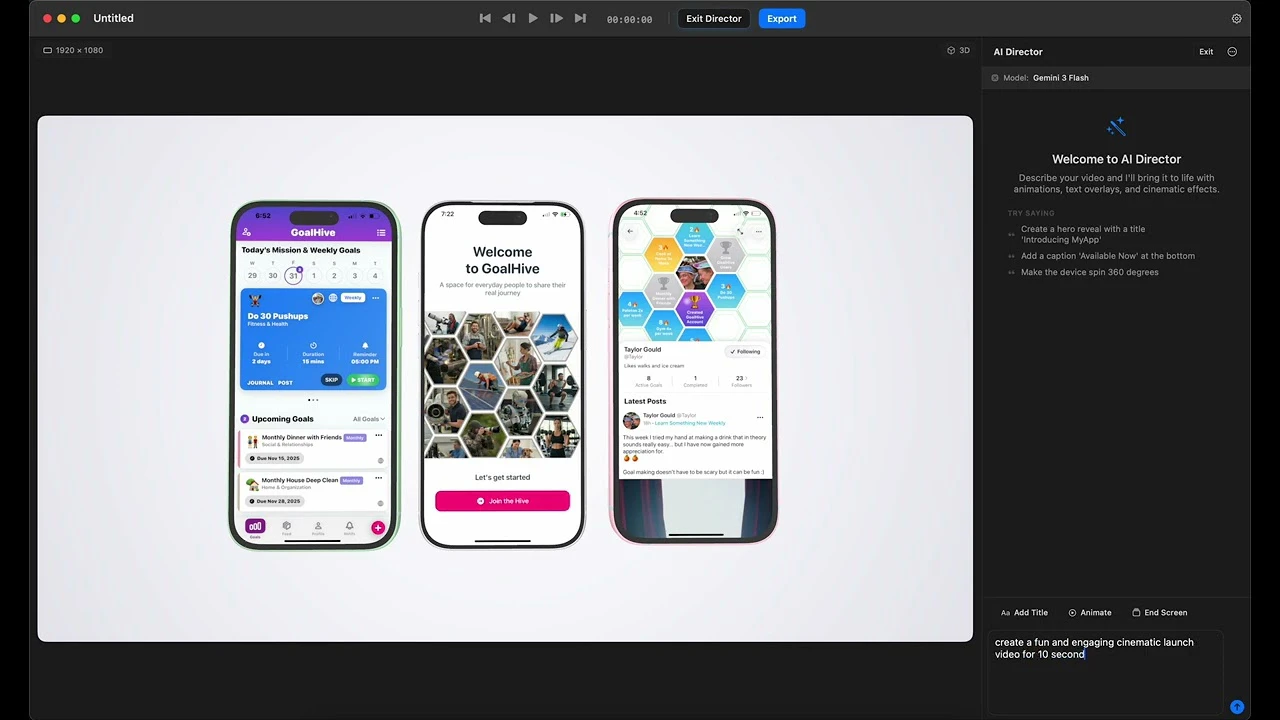 AIとあなたで、日数をかけずに数分で素晴らしい3Dアプリ動画を作成