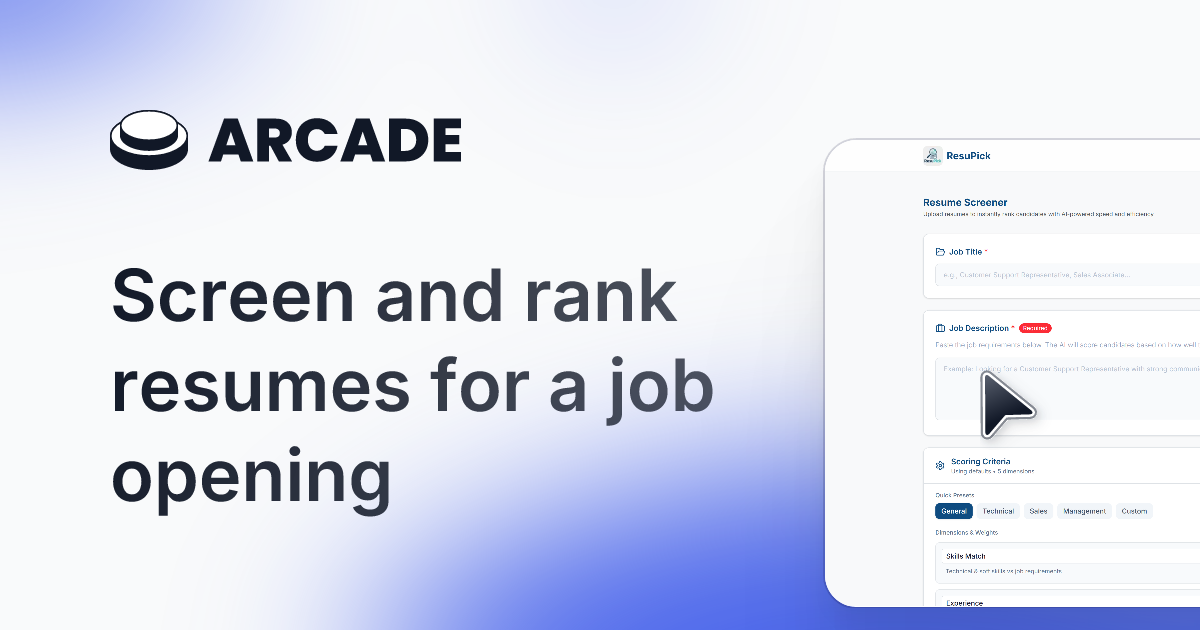 ## 概要 ResuPickは、求人説明と履歴書を一括アップロードするだけで、AIが候補者を実力ベースでスコアリング・ランク付けします。ブラインドスクリーニングにより名前・写真を非表示にし、公平...