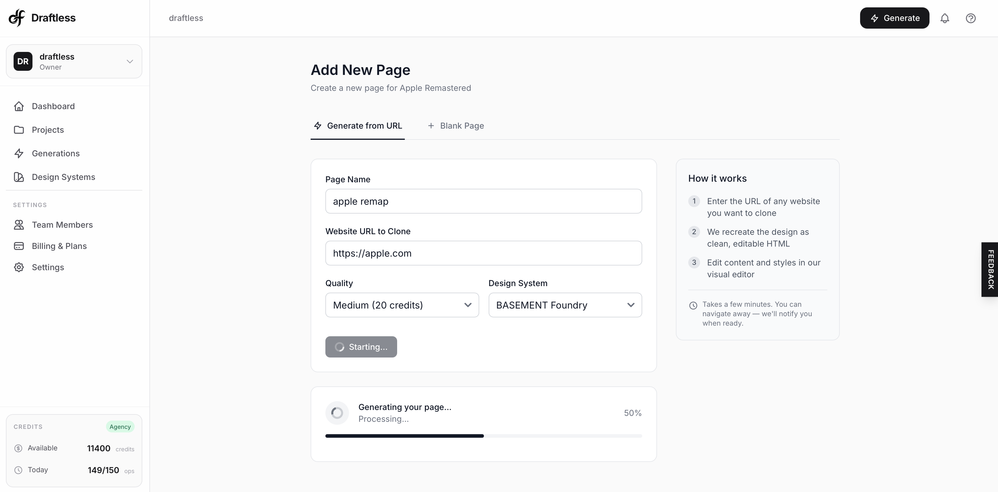 任意のウェブサイトをクローン。AIで編集。出荷までの日数を短縮。